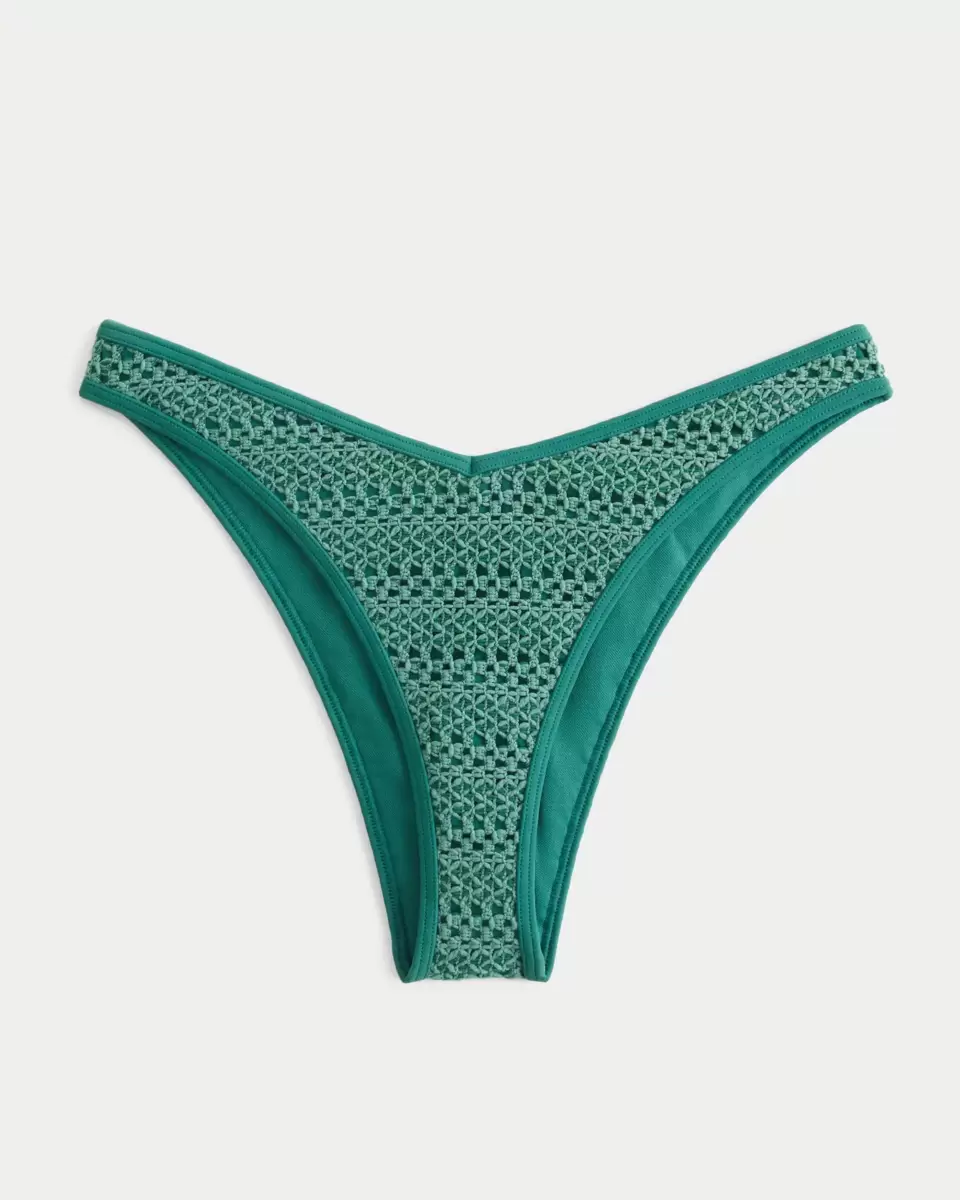 Urocze i wygodne majtki od bikini z miękkiego materiału w stylu szydełkowym, zaprojektowane z myślą o naszym maksymalnym kryciu. Importowane.
