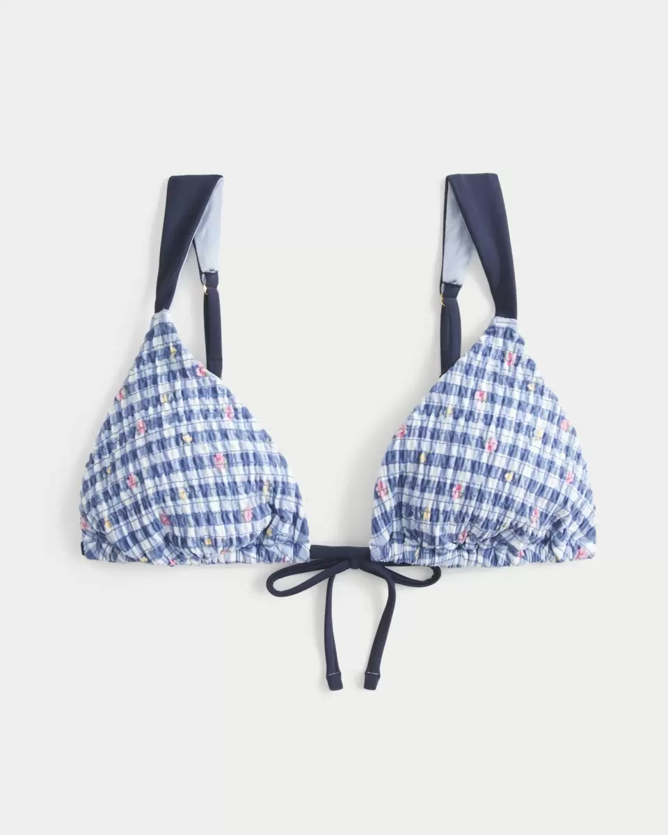 Uroczy i wygodny, ten top od bikini wykonany jest z miękkiego, marszczonego materiału. Wiązany, ramiączka na ramiona, wyjmowane wkładki, trójkątny krój. Importowane.