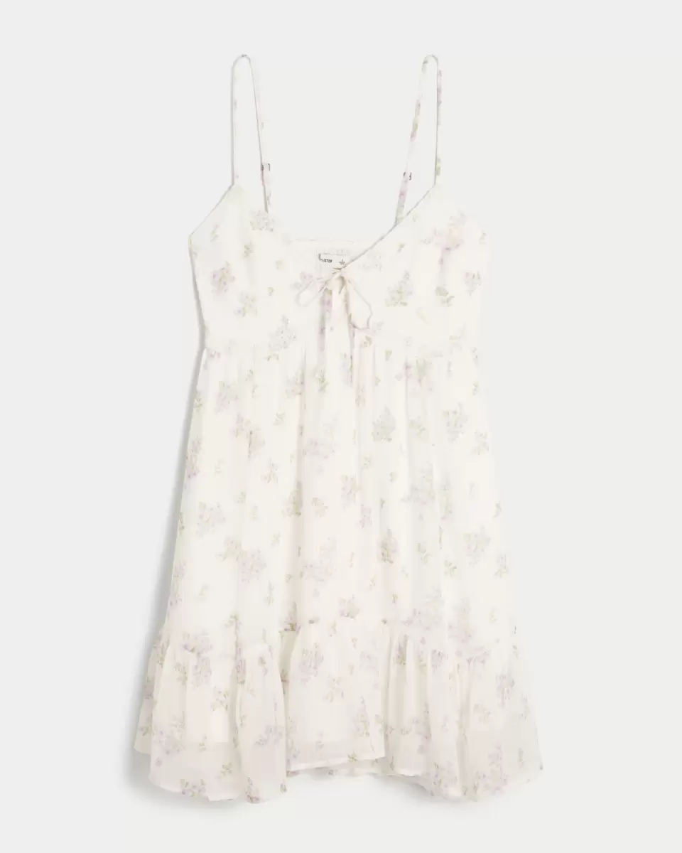 Ta śliczna sukienka typu babydoll jest wykonana z supermiękkiego szyfonu. Koronkowe wykończenie, plecy zakrywające biustonosz, asymetryczny dół, kieszenie, regulowane ramiączka, kokardka na środku dekoltu, falbanka u dołu. Importowane.