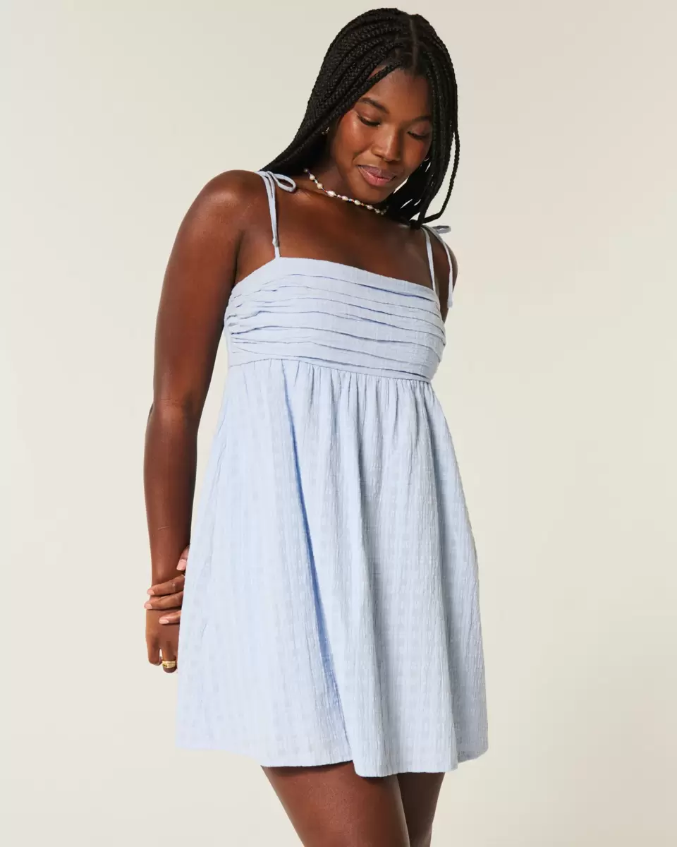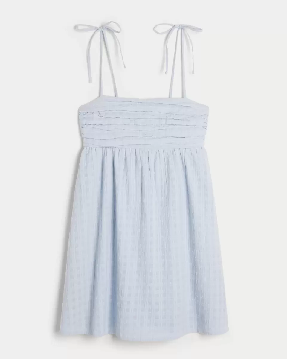 Wykonana z supermiękkiej tkaniny w kratkę, ta zwiewna mini sukienka ma marszczenia na biuście i urocze wiązane ramiączka. Produkt importowany.