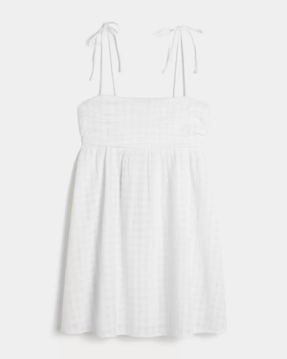 Wykonana z supermiękkiej tkaniny w kratkę, ta zwiewna mini sukienka ma marszczenia na biuście i urocze wiązane ramiączka. Produkt importowany.