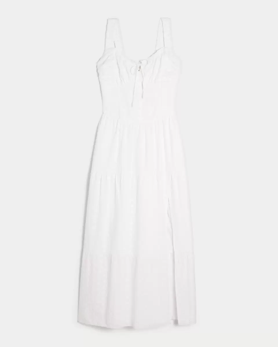 Ta superurocza i ultramiękka sukienka maxi ma efektowne marszczenia na bokach, marszczenia na biuście i wiązanie na środku dekoltu. Rozcięcie u dołu, dekolt w kształcie serca, spódnica warstwowa, guziki i haft na całej powierzchni. Importowane.