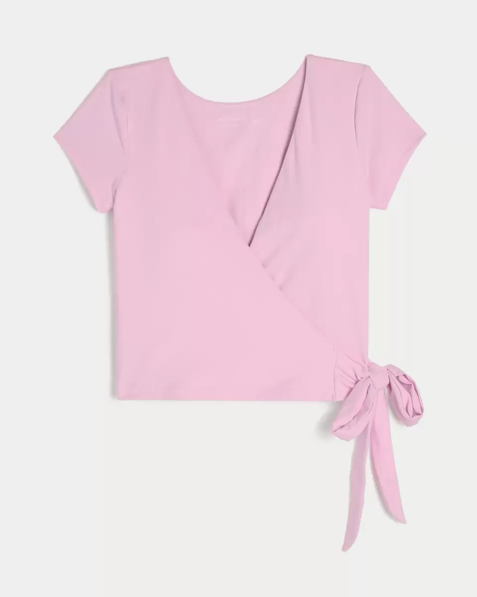 Ultrawygodna koszulka sportowa wykonana z oddychającego, rozciągliwego w czterech kierunkach, odprowadzającego wilgoć materiału Recharge o supermiękkim, szczotkowanym wykończeniu. Wbudowane wkładki, kopertowy krój z wiązaniem z boku, dekolt w serek, krótkie rękawy. Importowane.