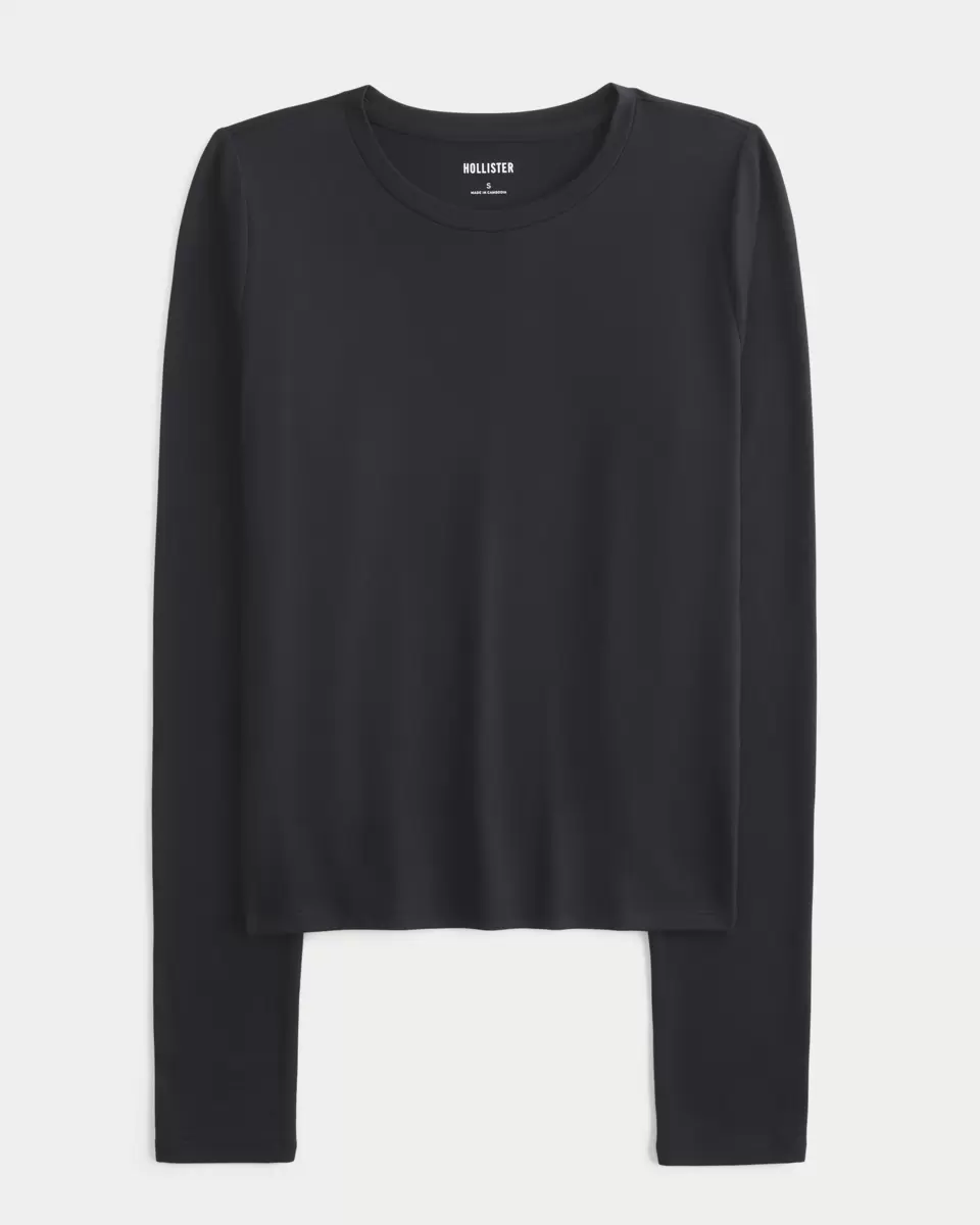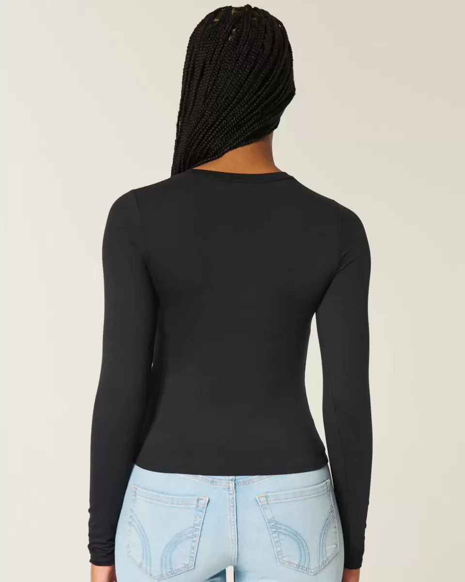 Ten przytulny top jest wykonany z supermiękkiej tkaniny o bezszwowym wyglądzie i fakturze. Okrągły dekolt, długie rękawy. Dopasowany krój. Produkt importowany.