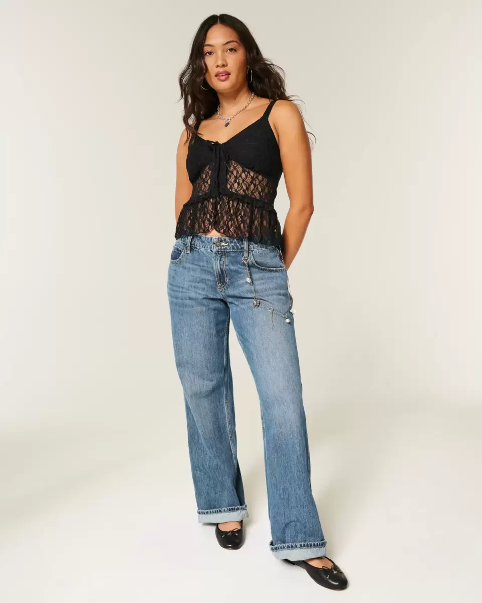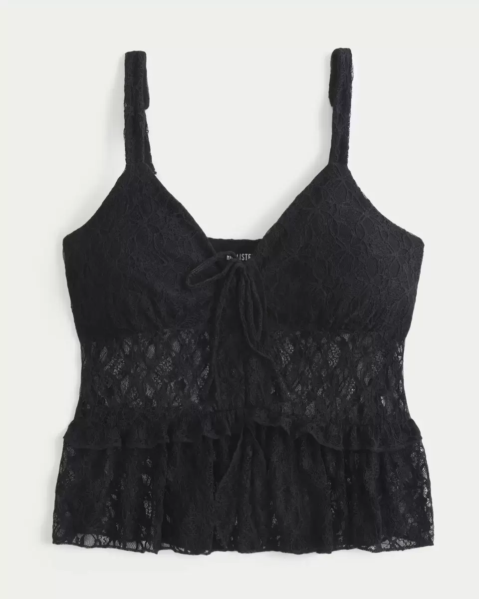 Piękny i supermiękki top z koronką na całej powierzchni i wiązaniem z przodu z subtelnym, odsłaniającym biust detalem. Wyjmowane wkładki pod biustem, regulowane ramiączka, idealny na co dzień i na elegancko! Dopasowany krój. Importowane.