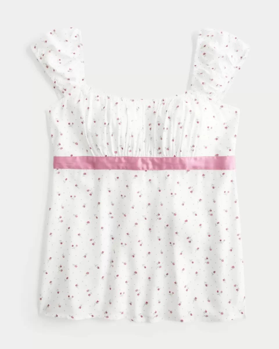 Piękna i supermiękka koszulka typu babydoll inspirowana Y2K, z satynowym wiązaniem w talii i marszczeniami na biuście. Miękkie marszczenia na plecach. Łatwe dopasowanie. Importowane.