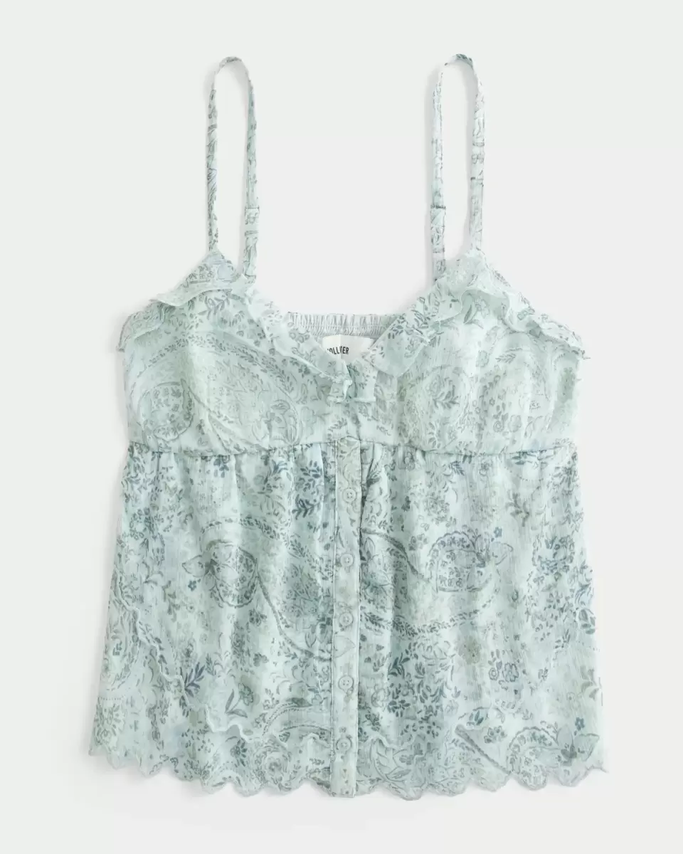 Wykonana z supermiękkiego, zwiewnego, marszczonego szyfonu, ta bluzka typu babydoll ma falbanki i warstwowy dół z haftem. Zapinana na guziki, z tyłu delikatnie marszczona. Wygląda niesamowicie zarówno w eleganckich, jak i codziennych stylizacjach! Importowane.