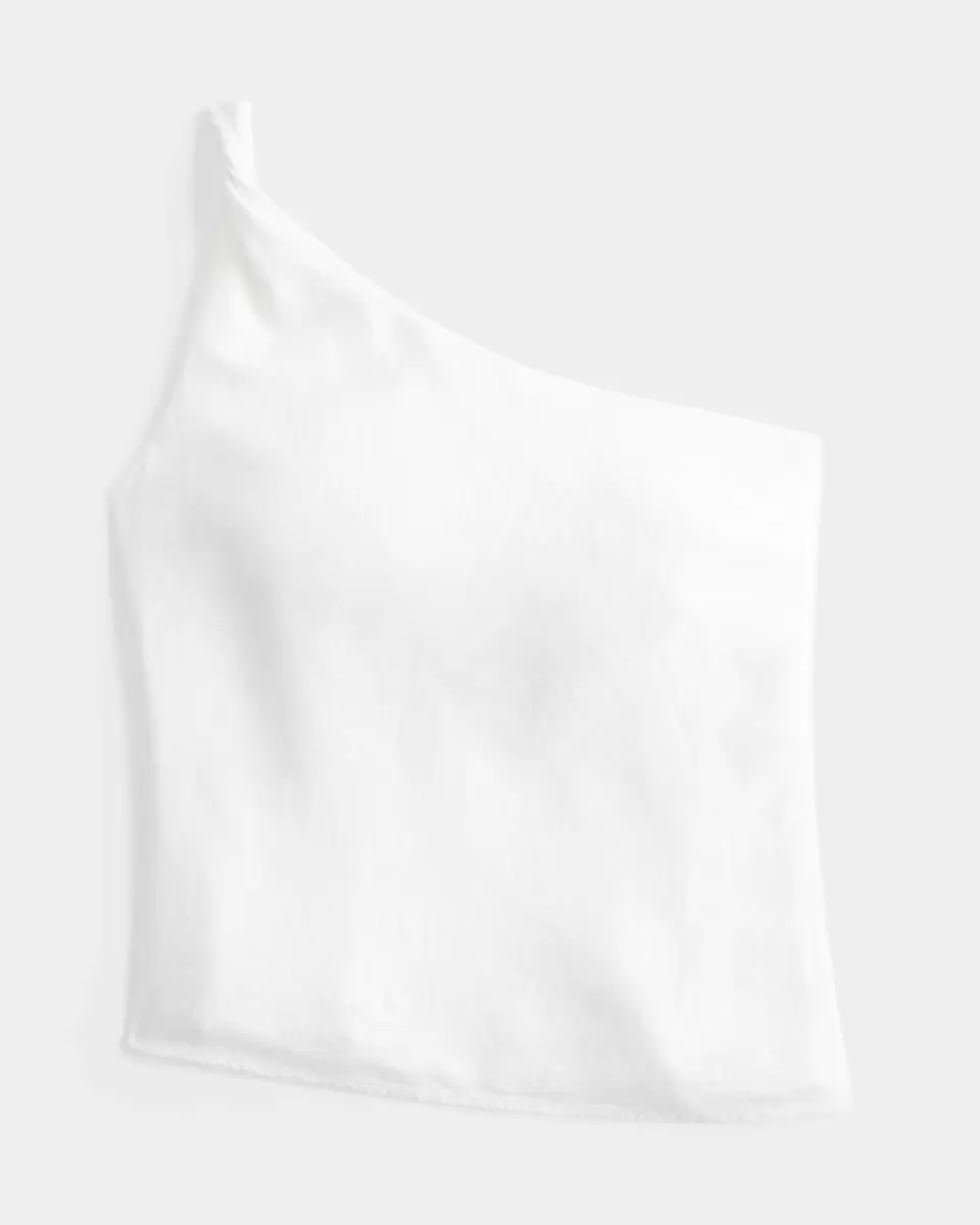 Uroczy top z miękkiej mieszanki lnu, zaprojektowany z asymetrycznym krojem na jedno ramię. Skręcone ramiączka, asymetryczny dół. Produkt importowany.