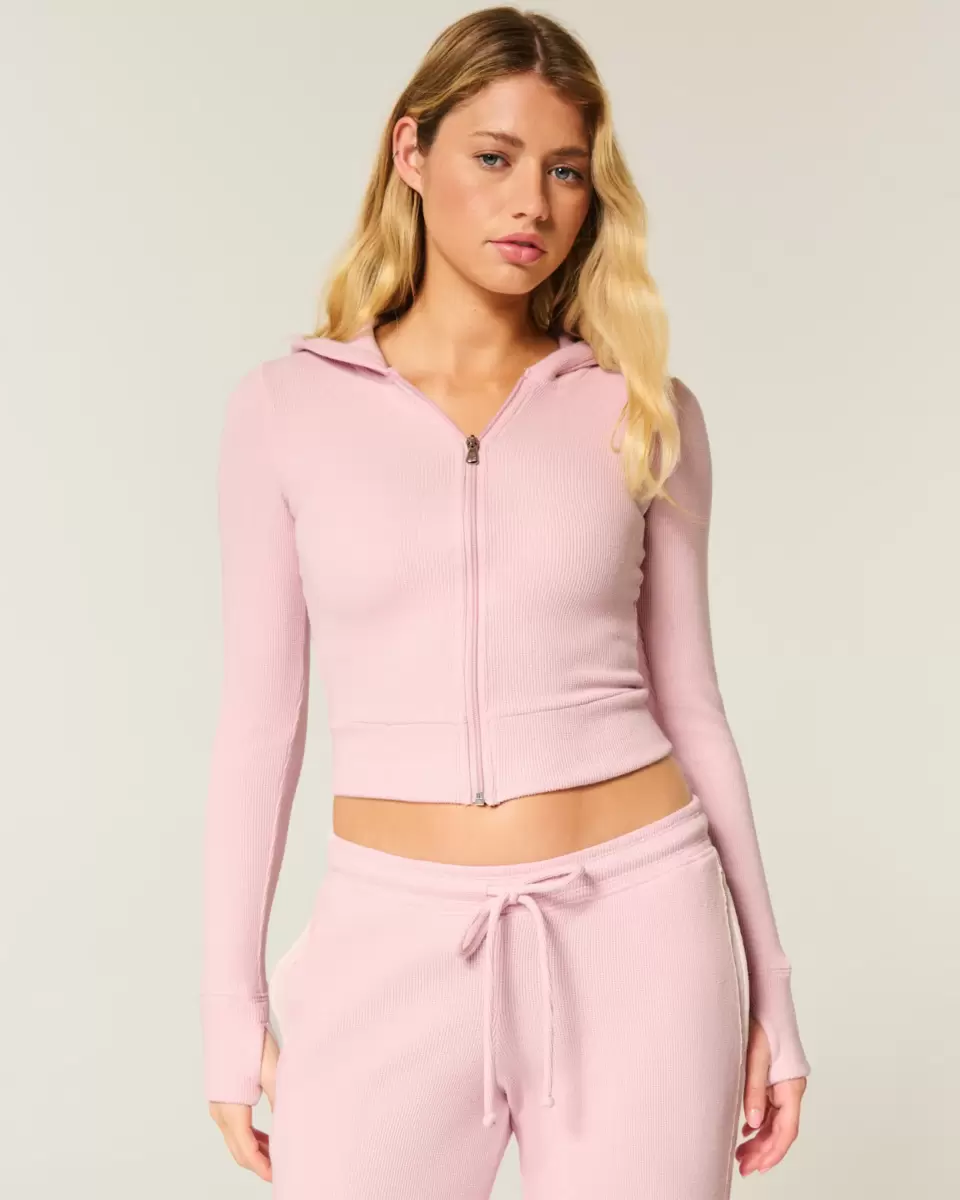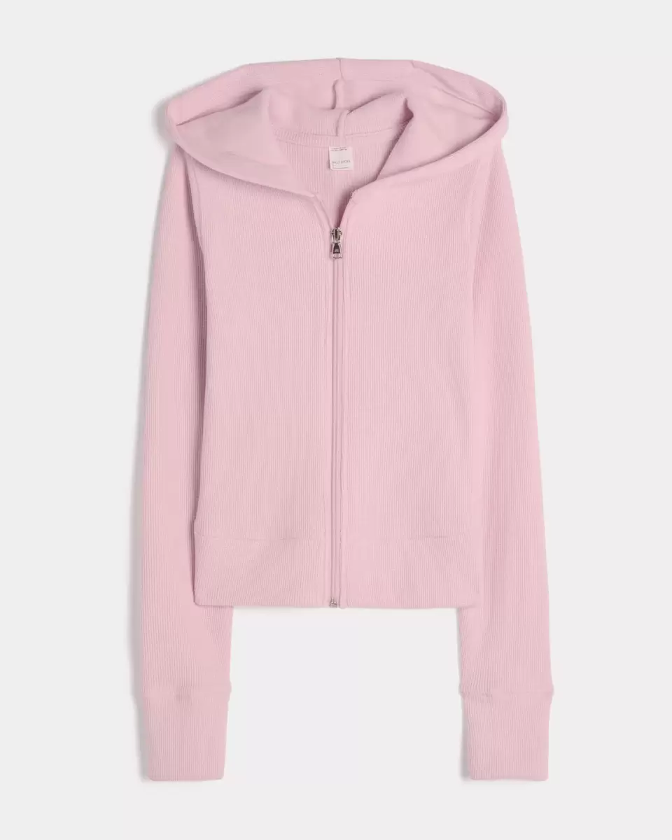 Urocza i wygodna bluza z kapturem z supermiękkiej tkaniny o fakturze wafla. Zapinana na suwak, z kapturem, długimi rękawami z otworami na kciuki. Dopasowany krój. Produkt importowany.