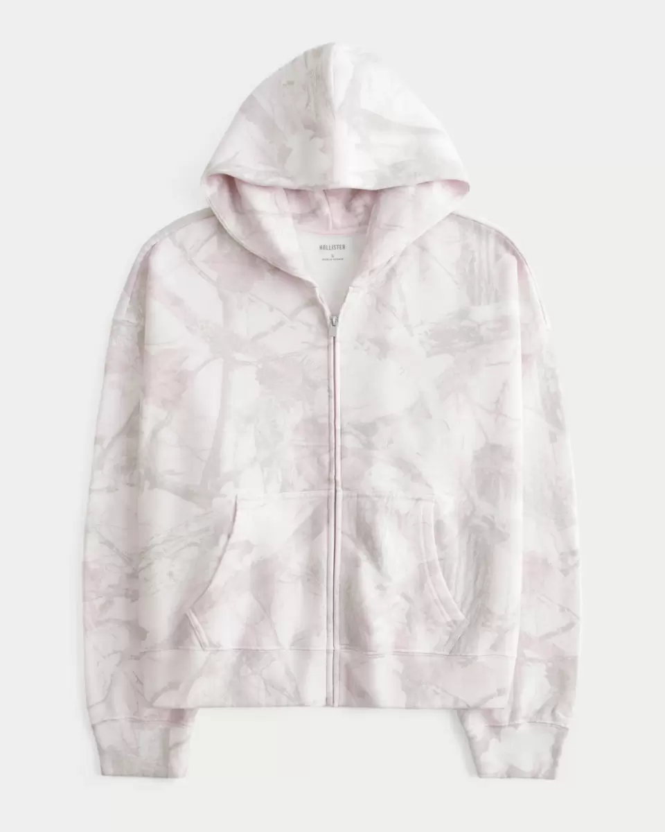 Supermiękka bluza z kapturem z polaru z różowym wzorem kamuflażowym na całej powierzchni i zapięciem na suwak. Kieszenie z przodu, długie rękawy, kaptur. Luźny krój. Produkt importowany.