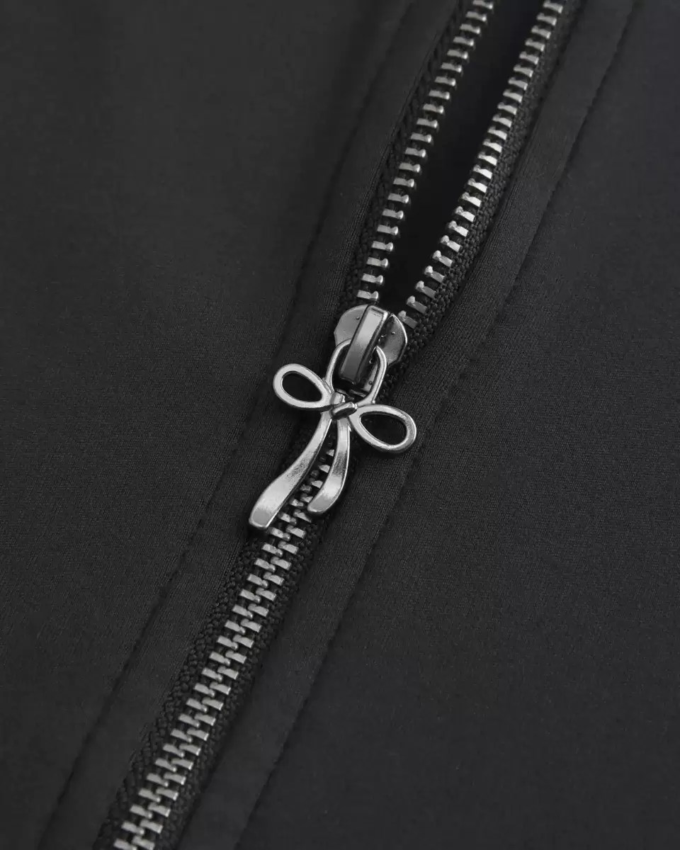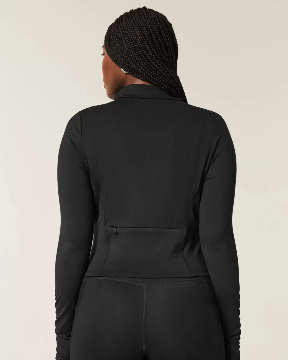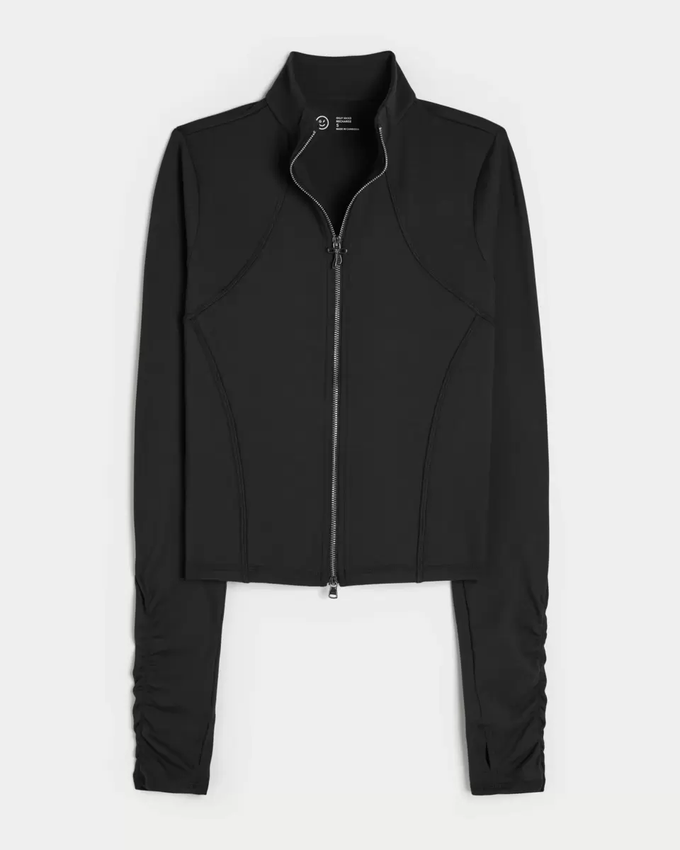 Zaprojektowane z oddychającej, rozciągliwej w czterech kierunkach, odprowadzającej wilgoć tkaniny Recharge o supermiękkim, szczotkowanym wykończeniu. Zapięcie na podwójny zamek błyskawiczny z kokardką, kieszenie z przodu, długie rękawy z marszczeniami i otwory na kciuki. Importowane.