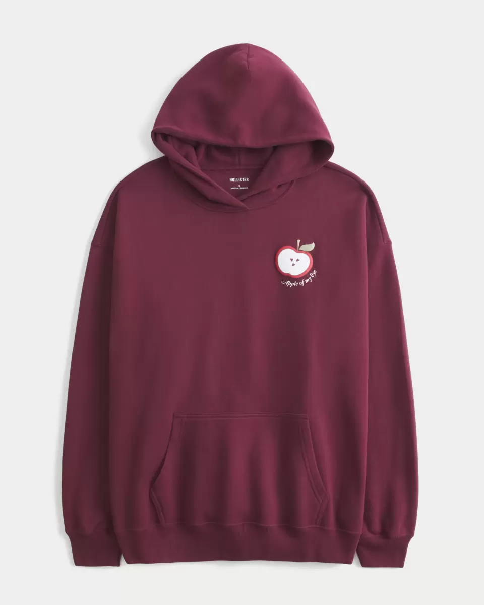 Supermiękka bluza z kapturem z polaru z grafiką jabłka na lewej piersi i plecach. Kaptur, kieszeń kangurka z przodu, długie rękawy. Importowane.