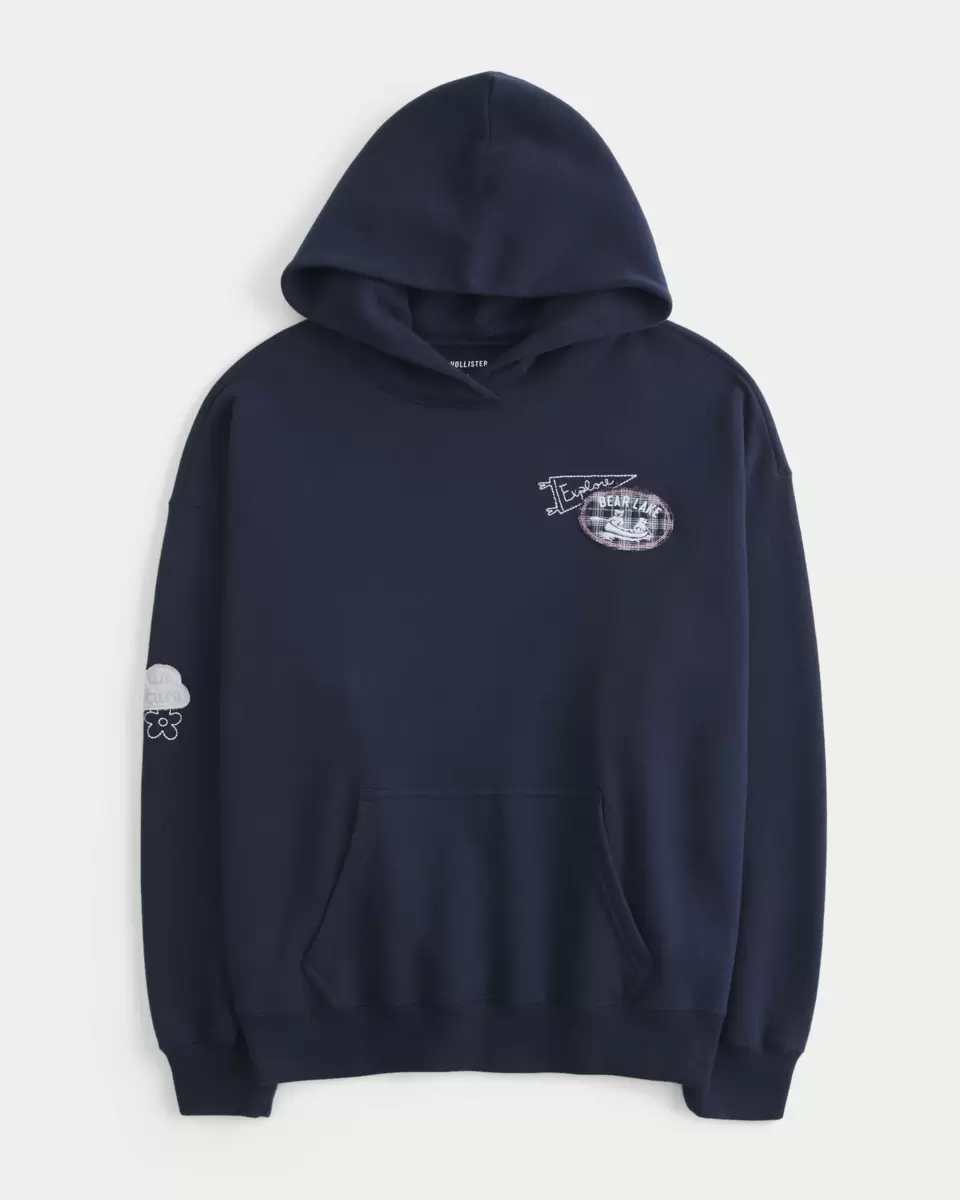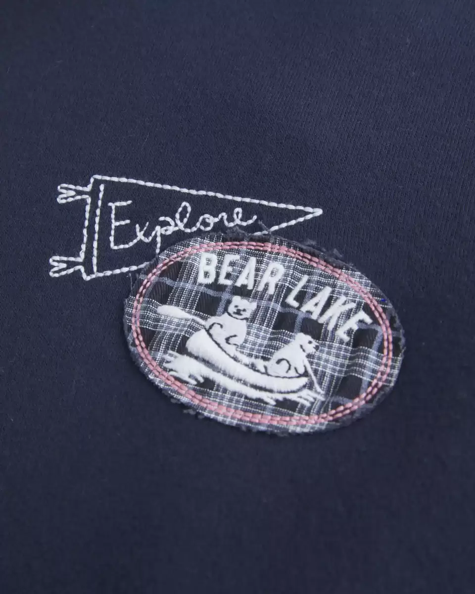 Wygodna i supermiękka, ta bluza z kapturem z polaru ozdobiona jest haftem i aplikacją Bear Lake na lewej piersi i prawym rękawie. Kaptur, przednia kieszeń kangurka, długie rękawy. Luźny krój. Importowane.