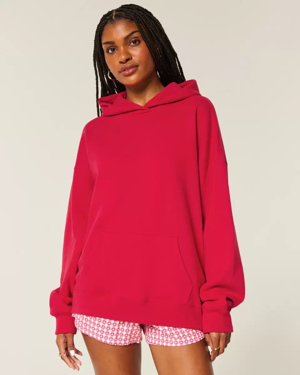 Supermiękka bluza z kapturem z polaru z kieszenią kangurką z przodu, kapturem i długimi rękawami. Luźny krój. Produkt importowany.