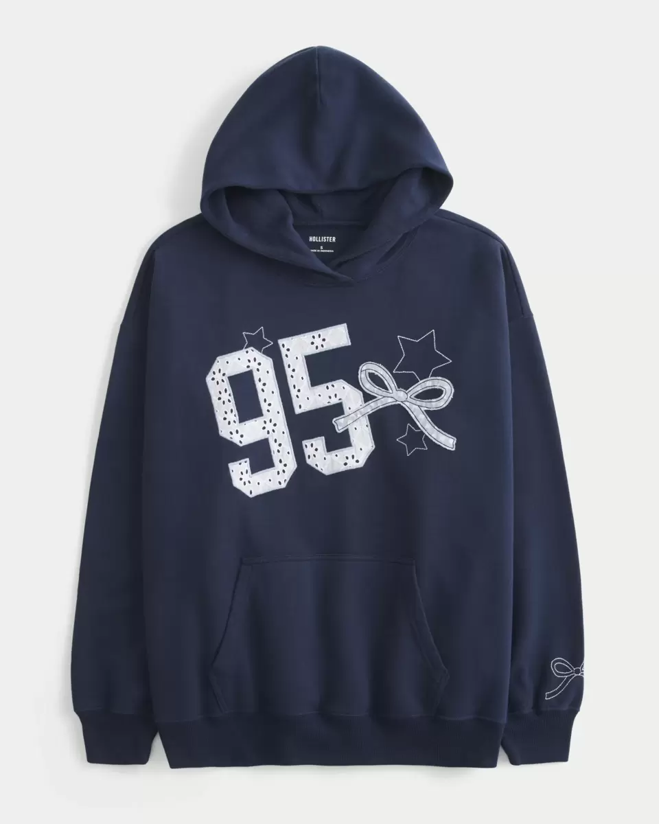 Supermiękka bluza z kapturem z polaru z aplikacją z numerem w stylu uniwersyteckim, detalami na oczkach i haftem. Przednia kieszeń kangurka, kaptur, długie rękawy. Luźny krój. Produkt importowany.
