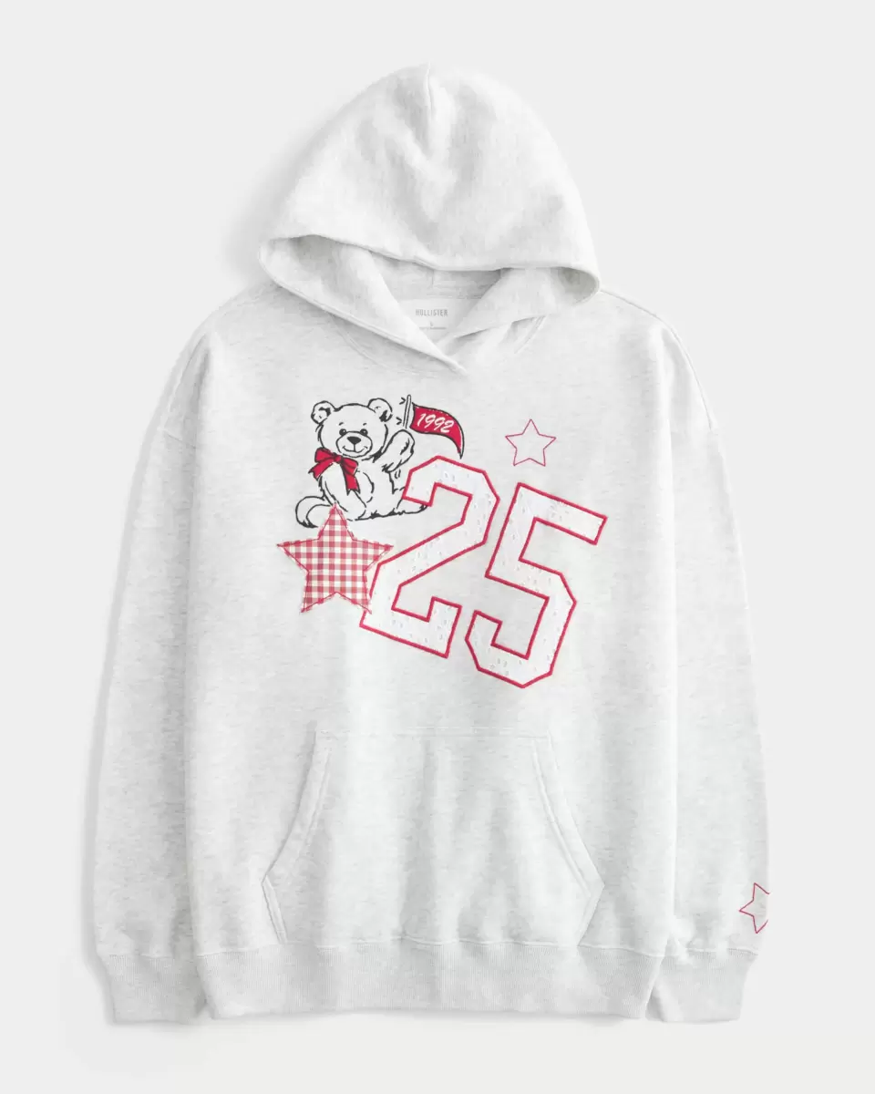 Supermiękka bluza z kapturem z polaru z aplikacją z numerem w stylu uniwersyteckim, detalami na przelotkach i haftem. Przednia kieszeń kangurka, kaptur, długie rękawy. Luźny krój. Importowane.