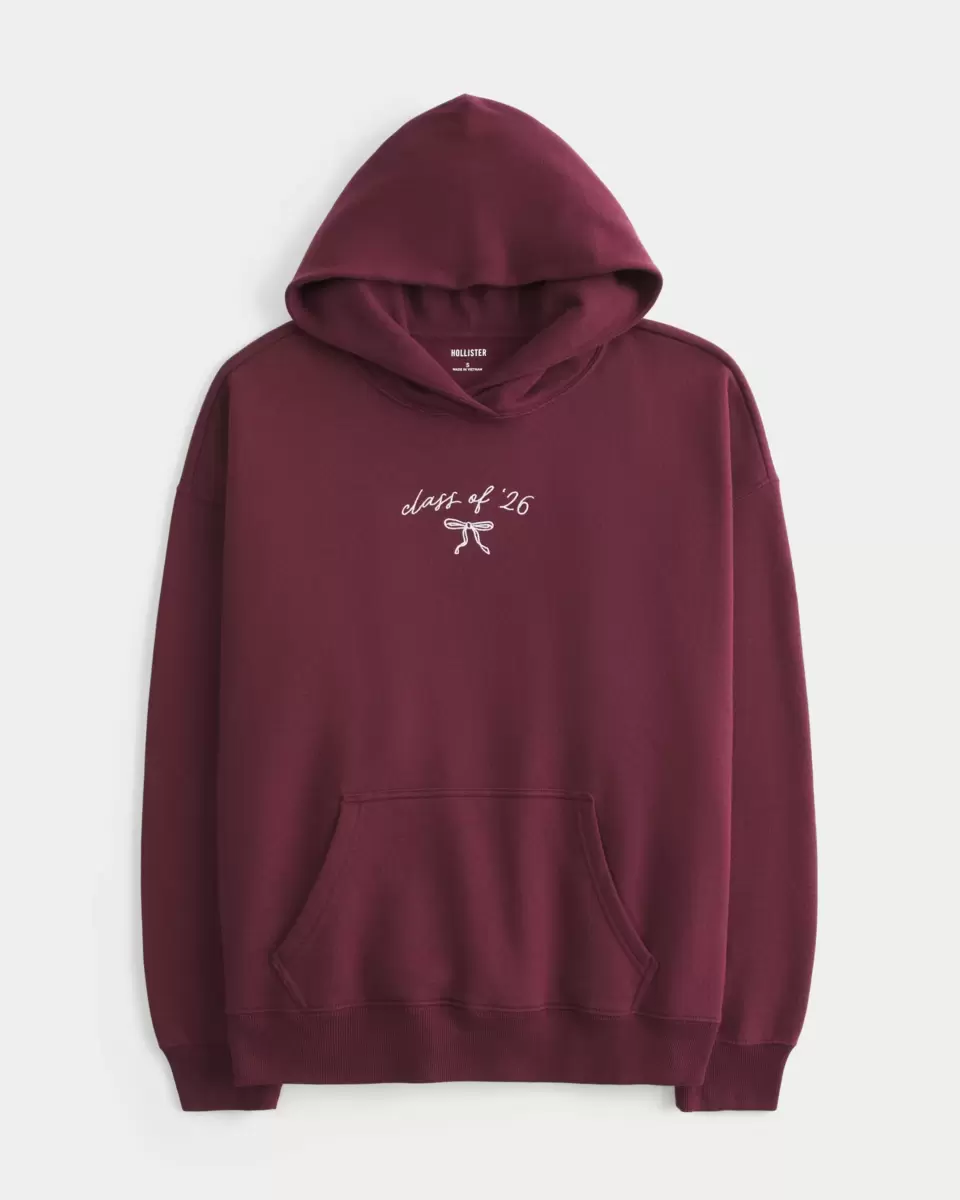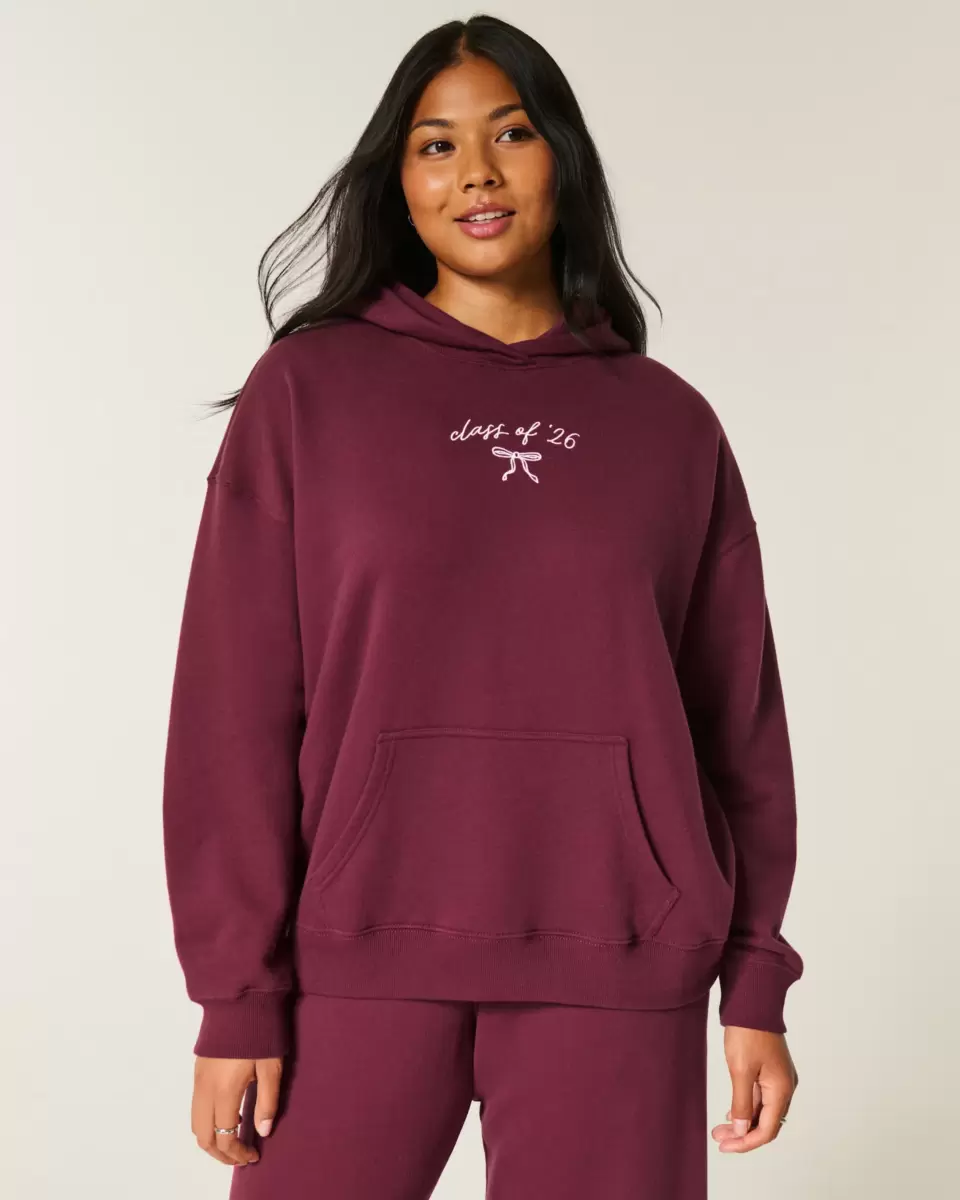Supermiękka bluza z kapturem z polaru z haftem graficznym z 2026 roku. Kaptur, kieszeń kangurka z przodu, długie rękawy. Luźny krój. Importowane.