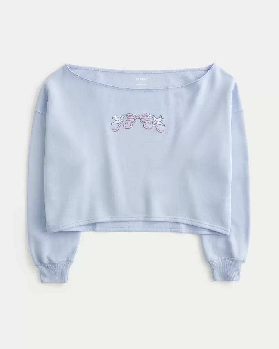 Ta supermiękka bluza polarowa ma luźny dekolt, który można nosić na obu ramionach. Długie rękawy, uroczy haft z kokardką. Łatwo się dopasowuje. Produkt importowany.