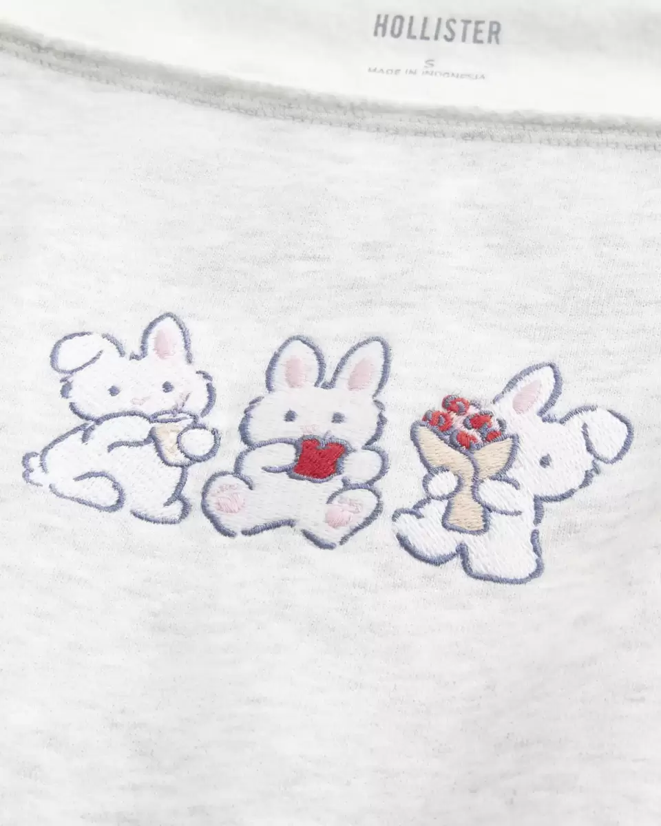 Ta supermiękka bluza polarowa ma luźny dekolt, który można nosić na obu ramionach. Długie rękawy, uroczy haft z króliczkiem. Łatwo się dopasowuje. Produkt importowany.