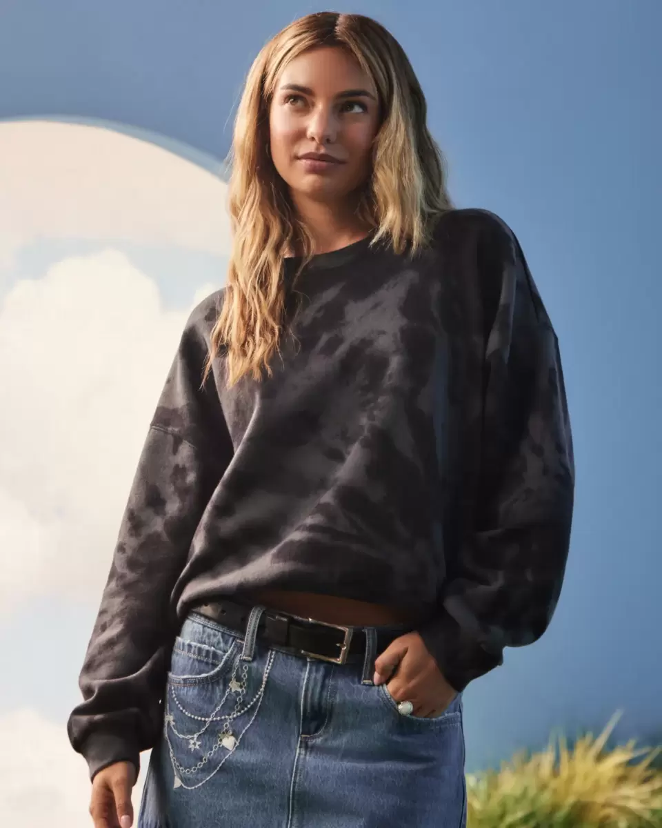 Supermiękka bluza polarowa z nadrukiem tie-dye na całej powierzchni. Okrągły dekolt, długie rękawy. Łatwo się układa. Produkt importowany.