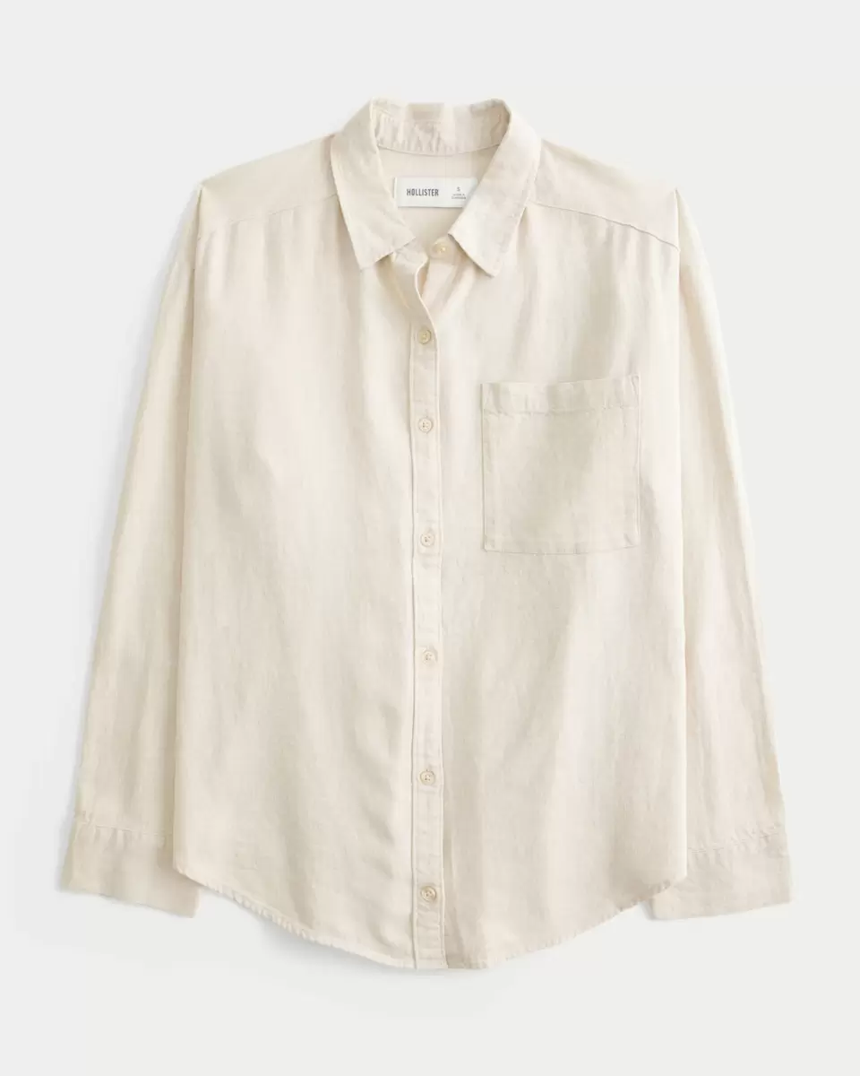 Twoja nowa ulubiona koszula jest wykonana z miękkiej mieszanki lnu i ma zapięcie na guziki na całej długości oraz kieszeń na lewej piersi. Zaokrąglony dół i kołnierzyk. Luźny krój. Produkt importowany.