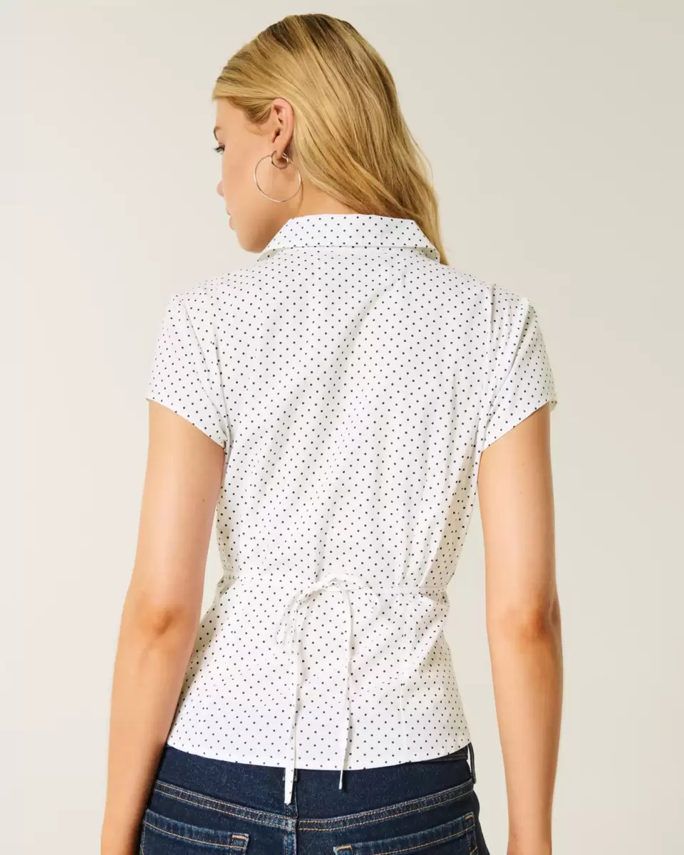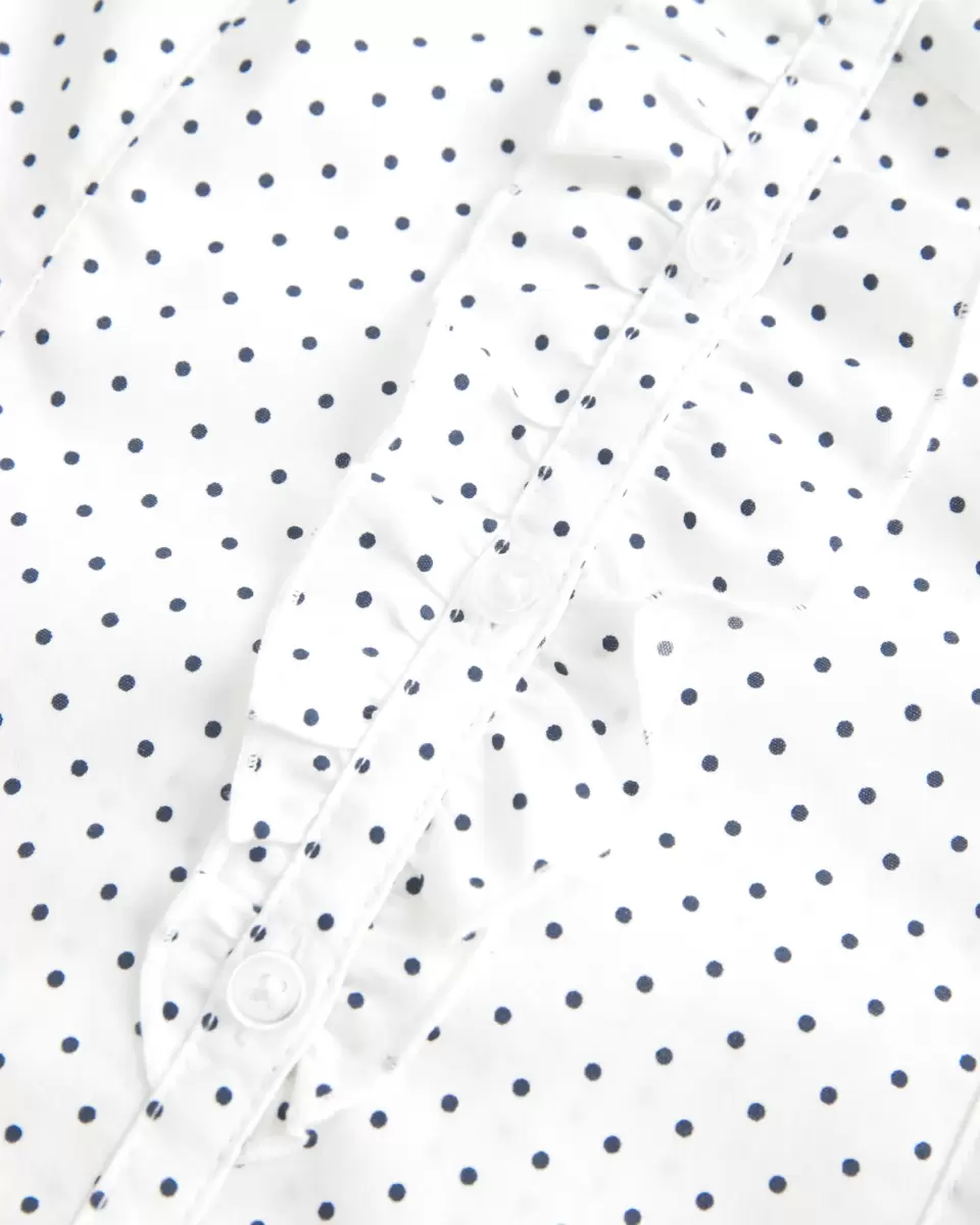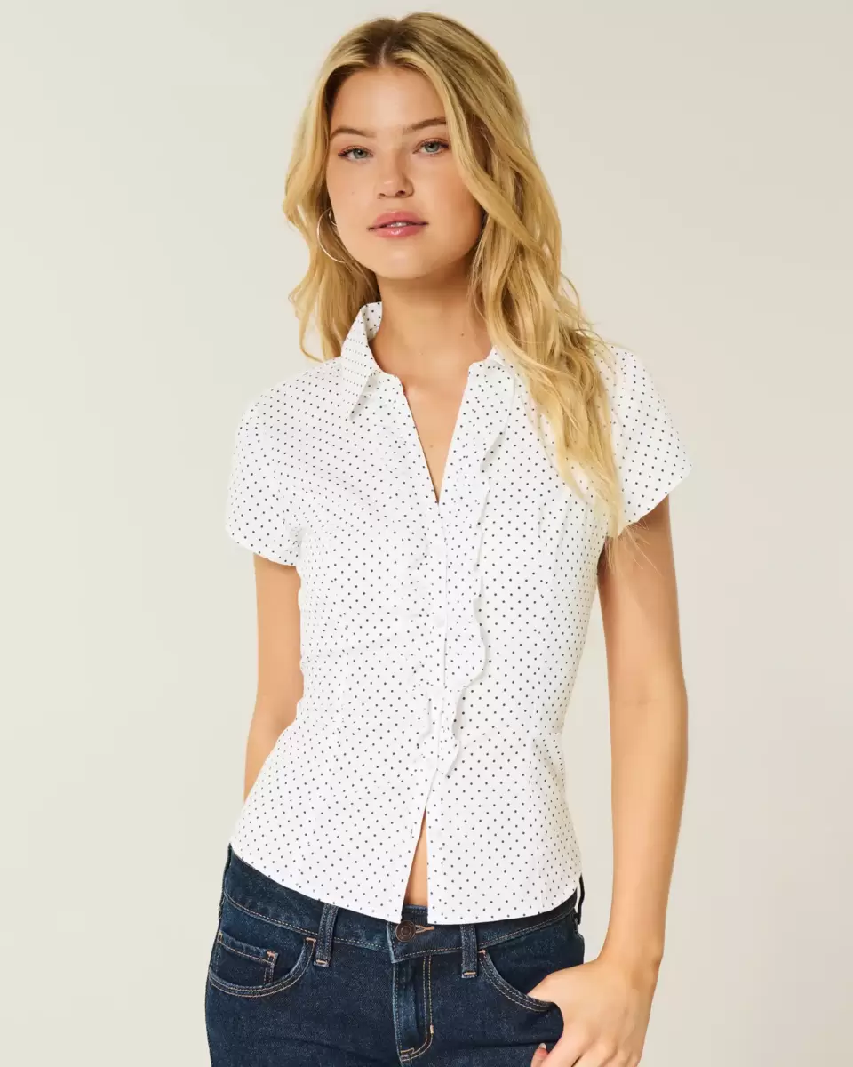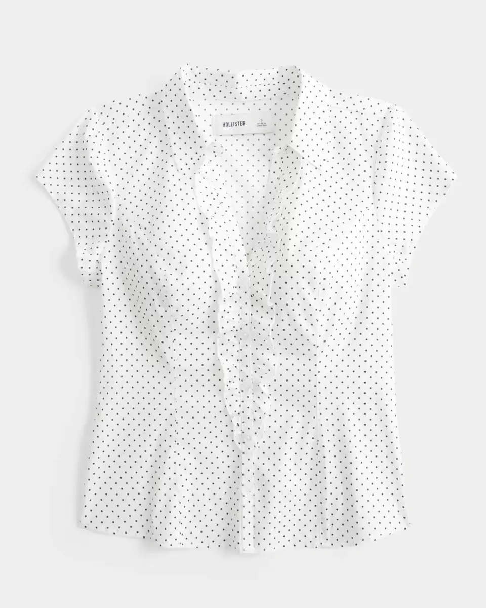 Miękka, klasyczna koszula w stylu smokingu z krótkim rękawem i falbankami wzdłuż zapięcia na guziki z przodu. Kołnierzyk i detale szwów dla uzyskania dopasowanego wyglądu. Dopasowany krój. Produkt importowany.