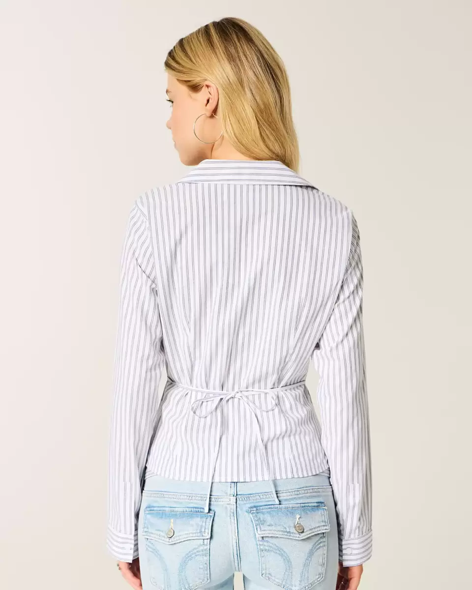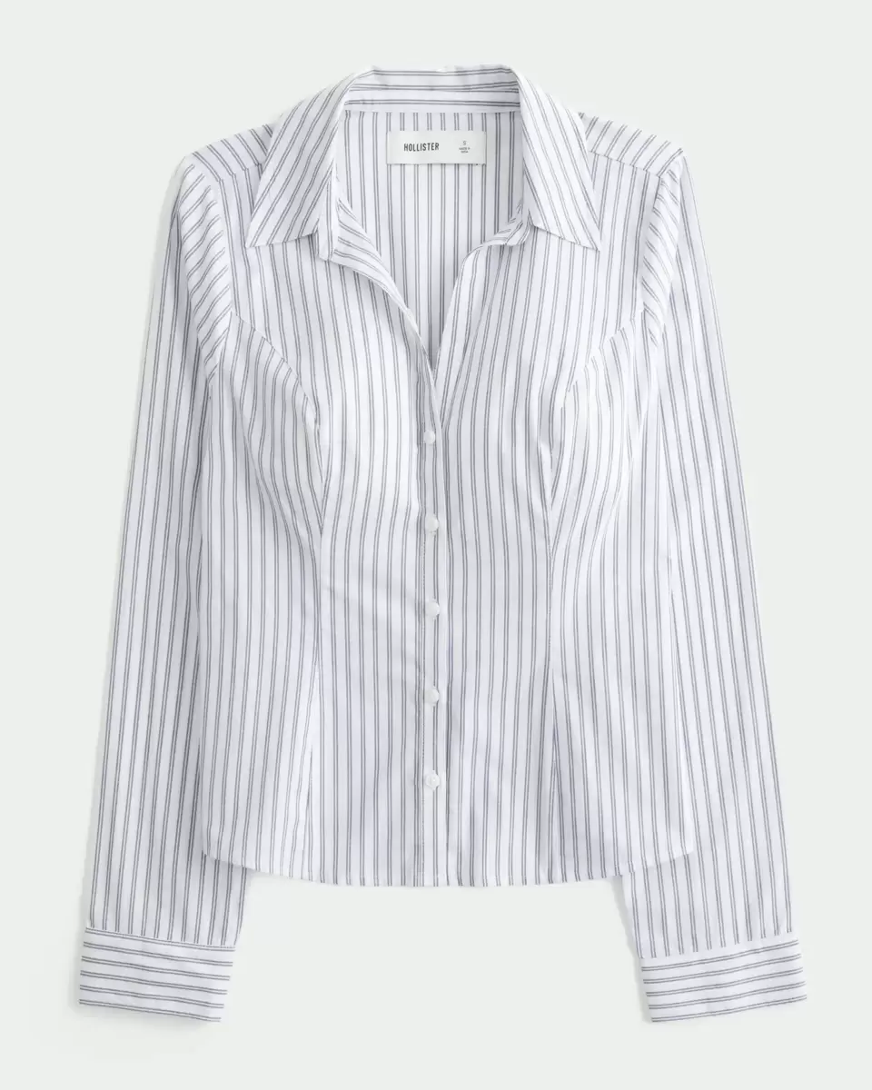 Inspirowana Y2K, dopasowana koszula z elastycznej popeliny z długim rękawem, kołnierzykiem, szwami i regulowanym wiązaniem z tyłu. Zapięcie na guziki. Dopasowany krój. Produkt importowany.