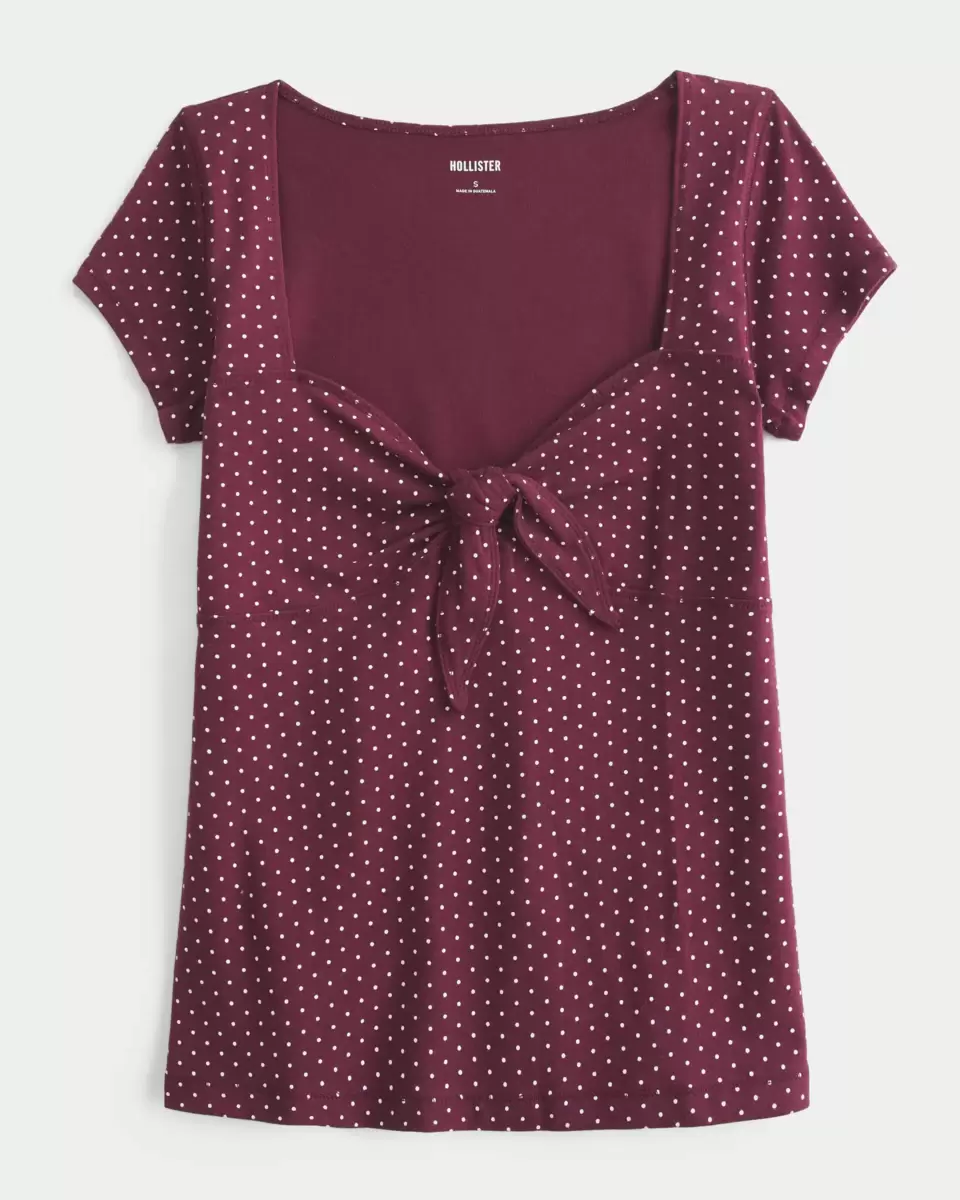 Zwiewna i supermiękka bluzka typu babydoll z uroczym wiązaniem na biuście. Krótkie rękawy, dłuższy krój. Łatwo się dopasowuje. Produkt importowany.