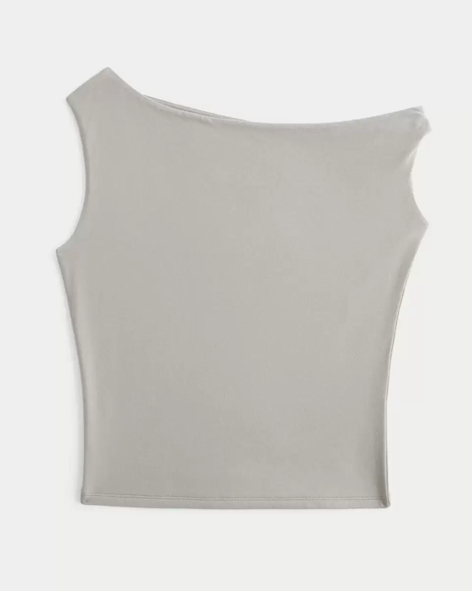 Ten ładny, supermiękki top ma asymetryczny dekolt odsłaniający ramiona i subtelny, skręcony detal. Produkt importowany.