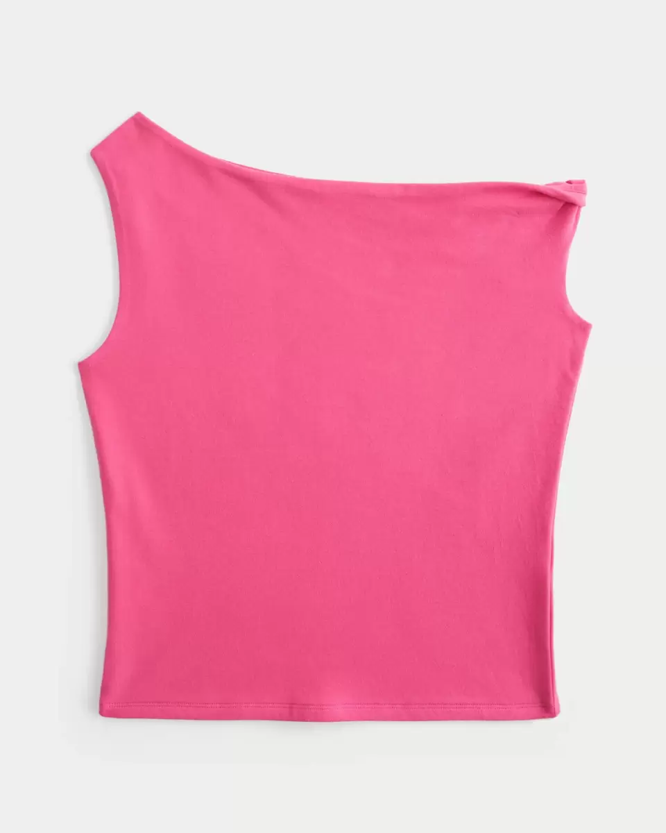 Ten ładny, supermiękki top ma asymetryczny dekolt odsłaniający ramiona i subtelny, skręcony detal. Produkt importowany.