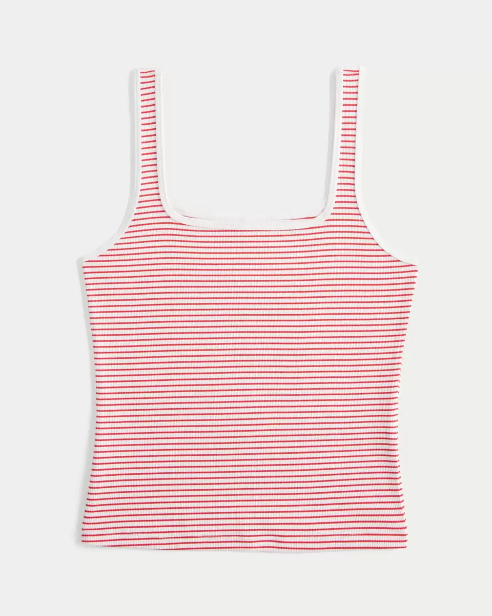 Uroczy i wygodny top z prążkowanej tkaniny o bezszwowym wyglądzie i fakturze. Kwadratowy dekolt. Dopasowany krój. Produkt importowany.