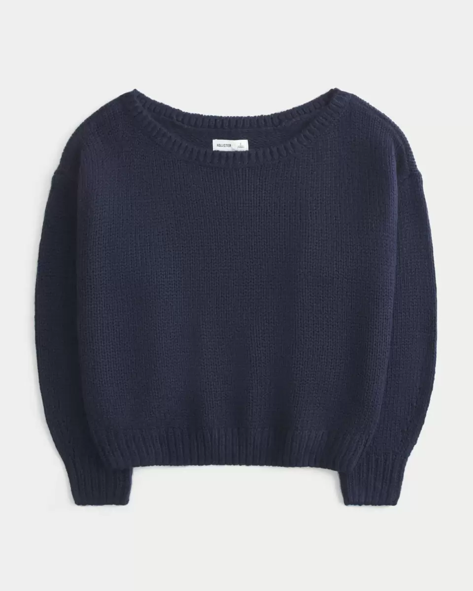 Przytulny i supermiękki sweter o luźnym kroju i odkrytym dekolcie. Długie rękawy, ściągacze.