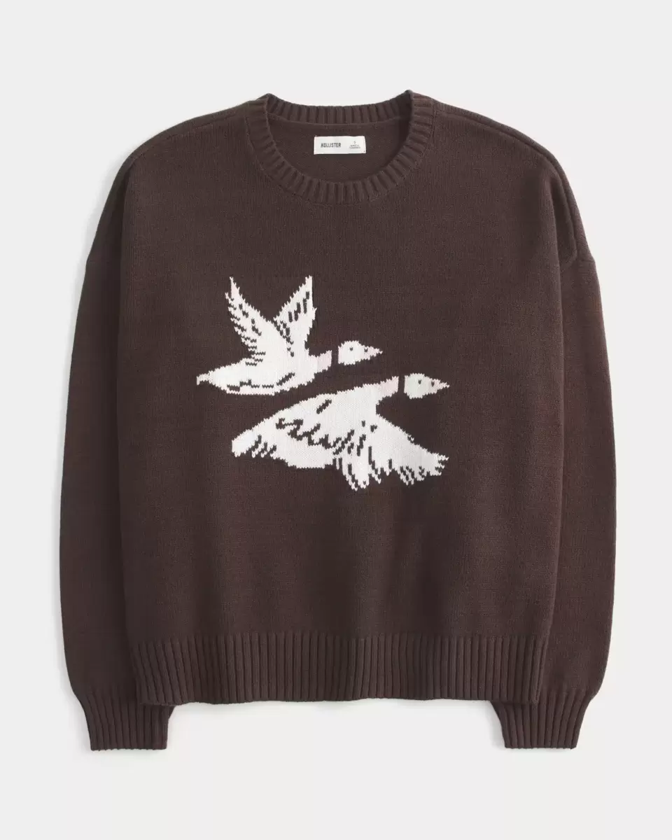 Ten przytulny i supermiękki sweter z grafiką z latającymi ptakami. Okrągły dekolt, długie rękawy, ściągacze. Łatwy w dopasowaniu. Produkt importowany.
