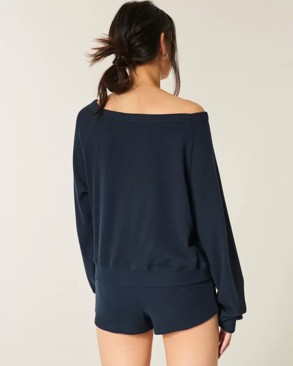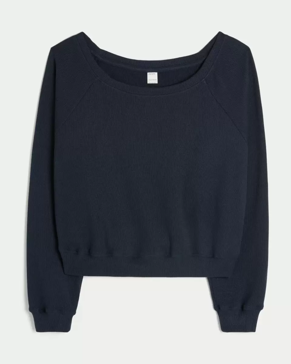 Przytulny i supermiękki top z tkaniny waflowej, z odkrytym dekoltem. Długie rękawy. Produkt importowany.