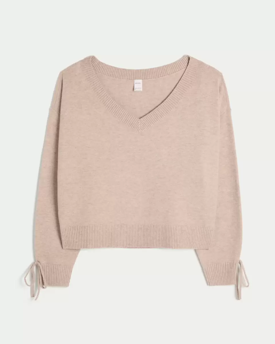 Przytulny i supermiękki sweter z odkrytym dekoltem w serek i uroczymi kokardkami na rękawach. Prążkowane wykończenia, długie rękawy. Produkt importowany.
