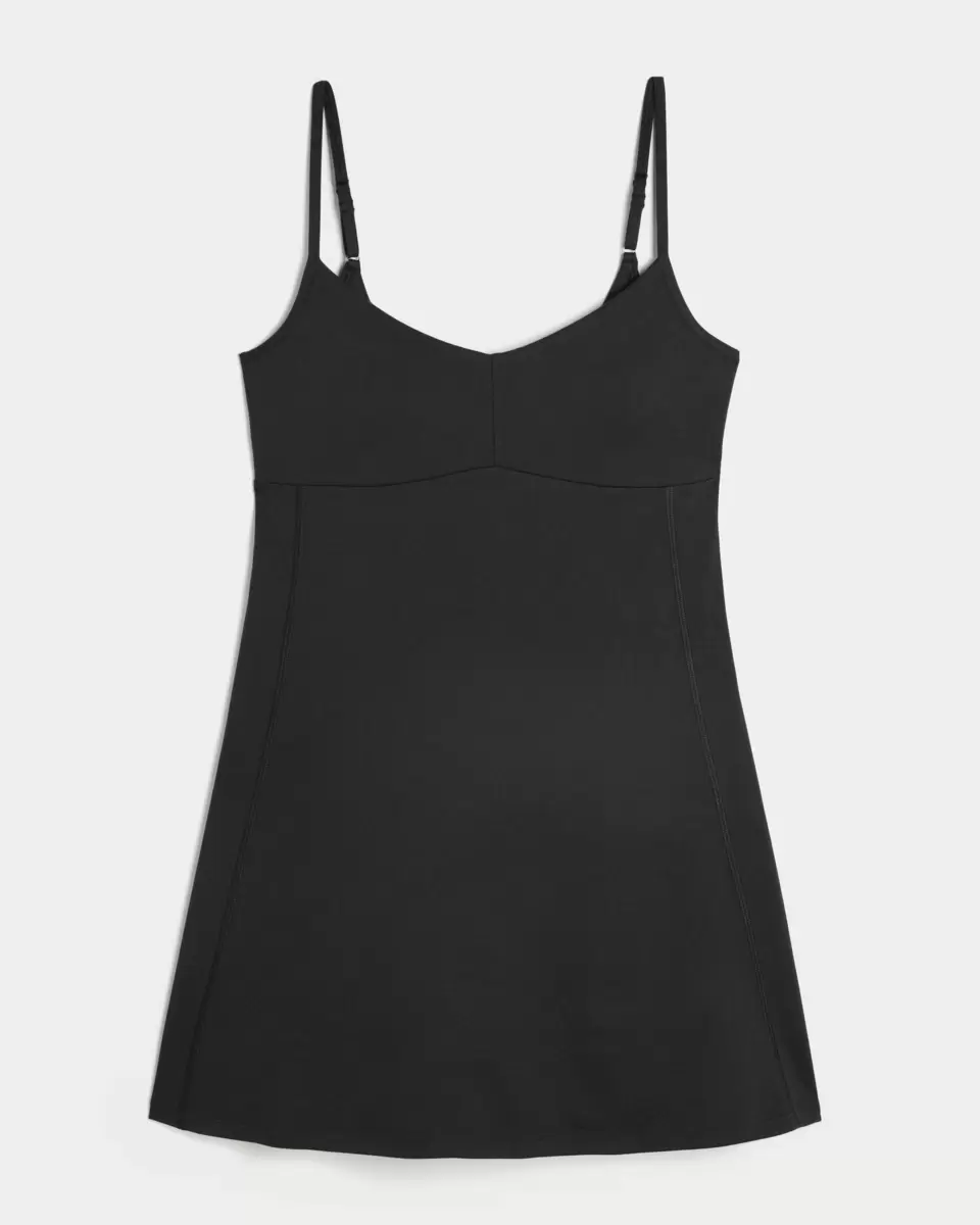 Ultrawygodna, sportowa sukienka typu babydoll, wykonana z oddychającej, rozciągliwej w czterech kierunkach, odprowadzającej wilgoć tkaniny Recharge o supermiękkim, szczotkowanym wykończeniu. Wbudowane spodenki i biustonosz sportowy z wkładkami, regulowane ramiączka. Importowane.