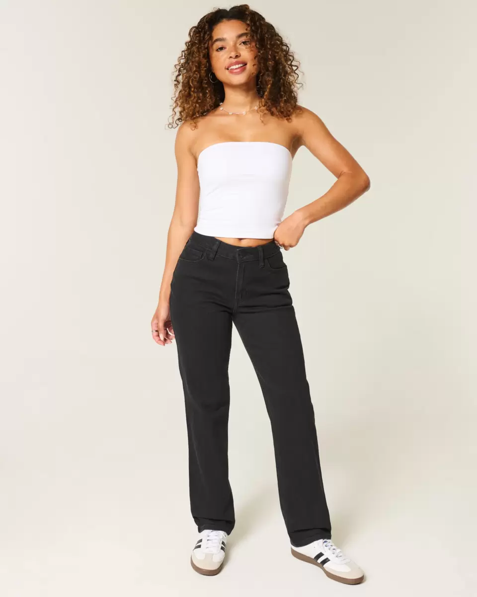 Wygodne jeansy z denimu Vintage Stretch, zaprojektowane z atrakcyjnym wysokim stanem i prostymi nogawkami. Importowane.