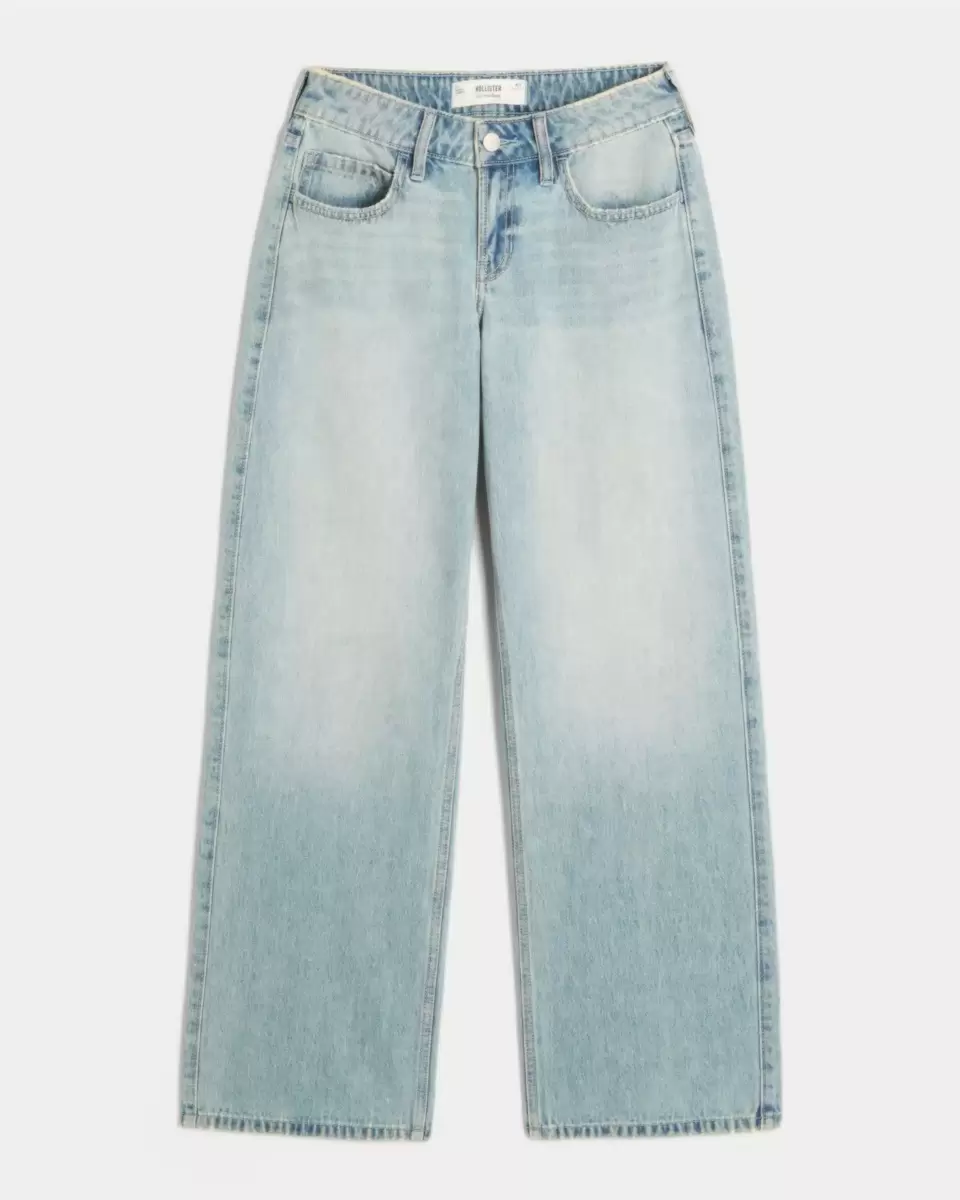 Wygodne jeansy w jasnym odcieniu, z luźną nogawką i atrakcyjnym, niskim stanem. Wyblaknięcia, przetarcia. Importowane.