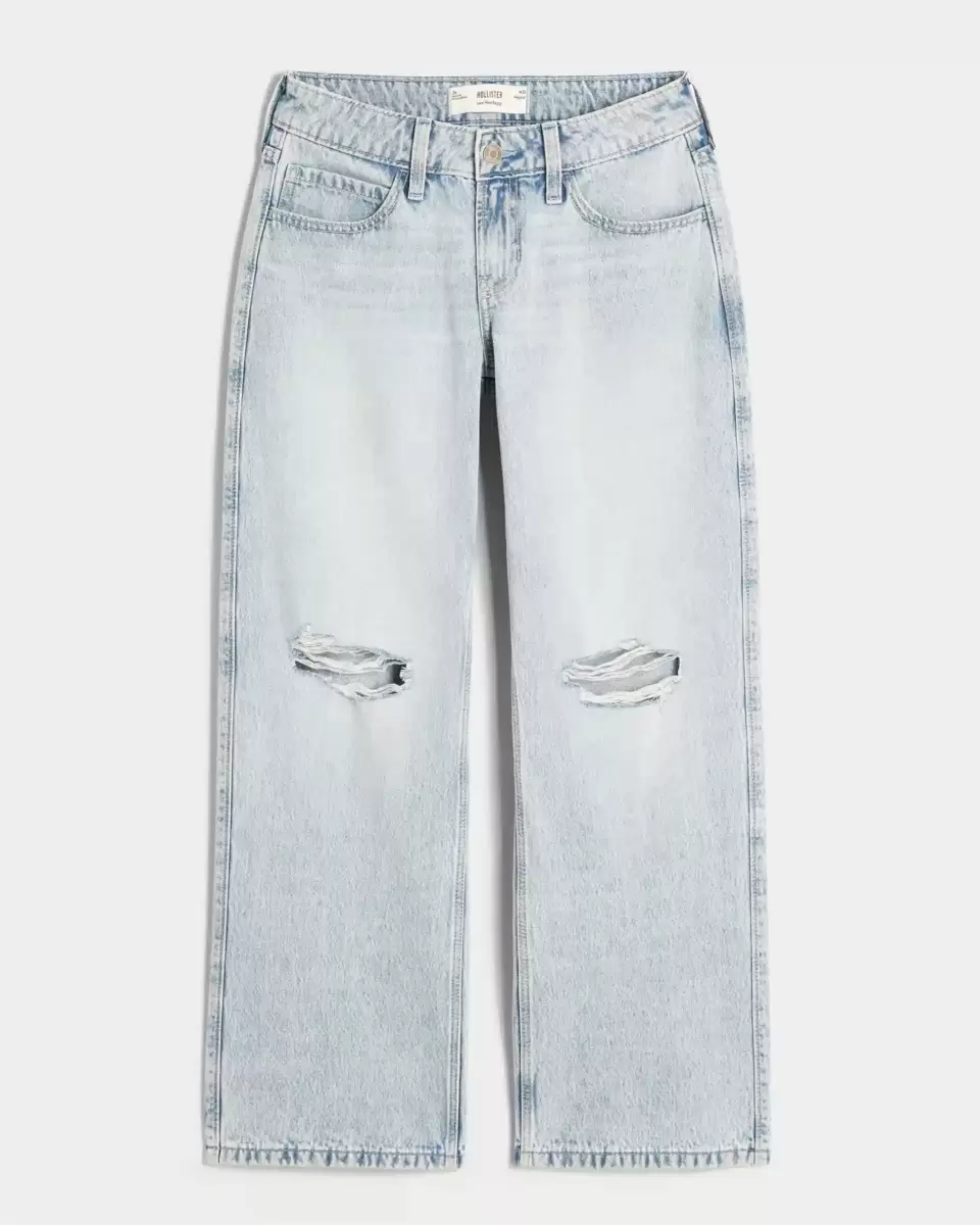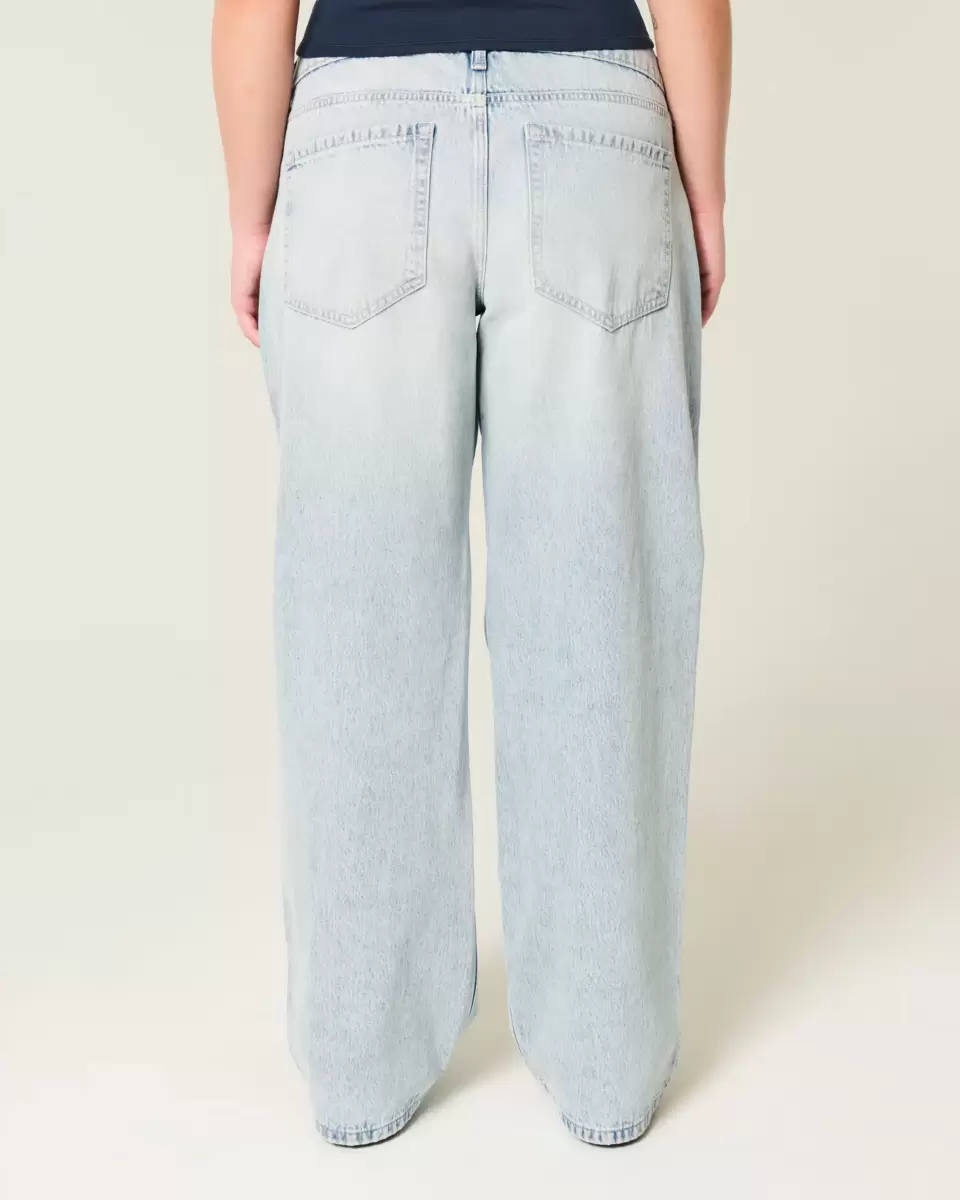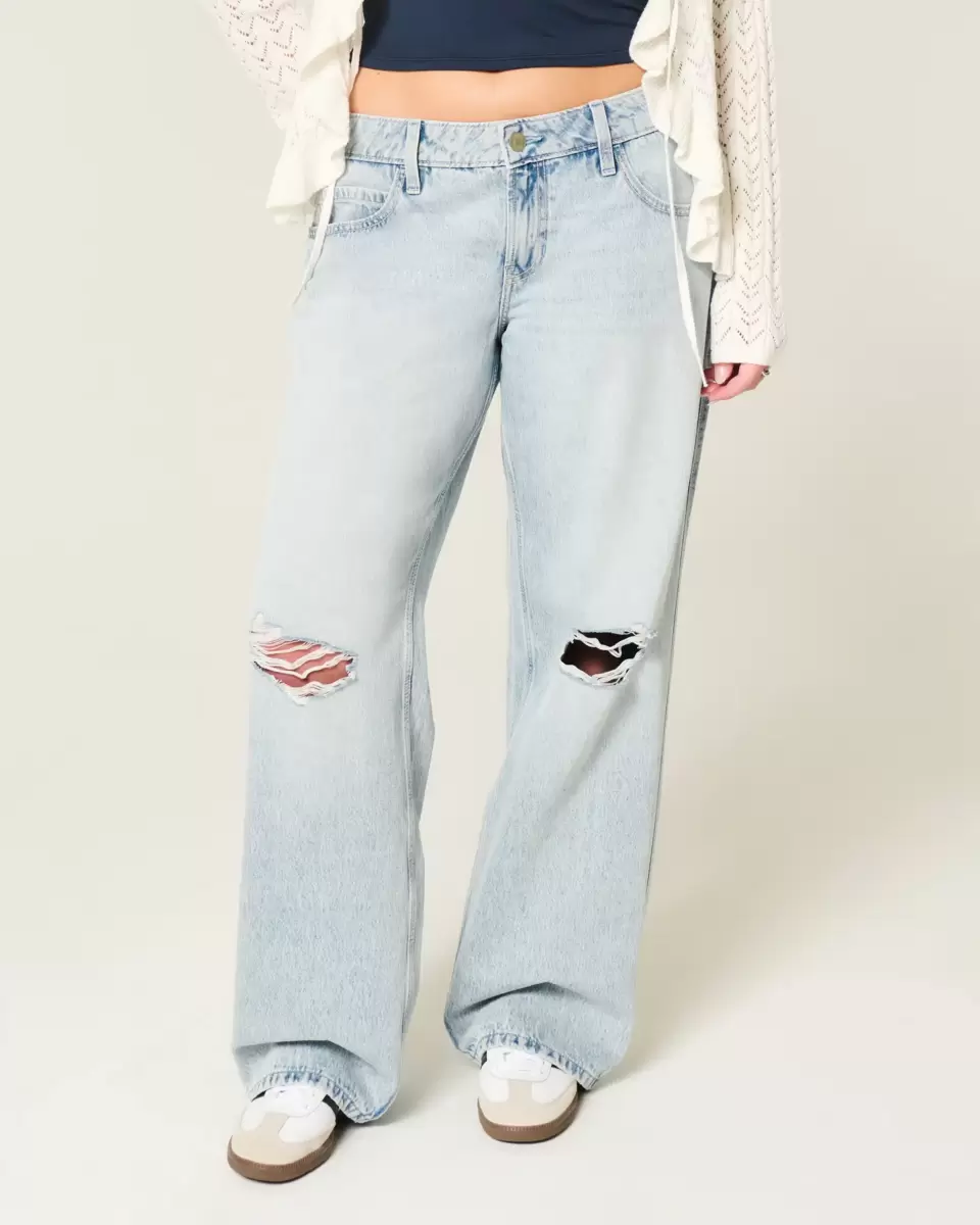 Wygodne jeansy w jasnym odcieniu, z luźną nogawką i atrakcyjnym niskim stanem. Wyblaknięcia, przetarcia i przetarcia. Importowane.