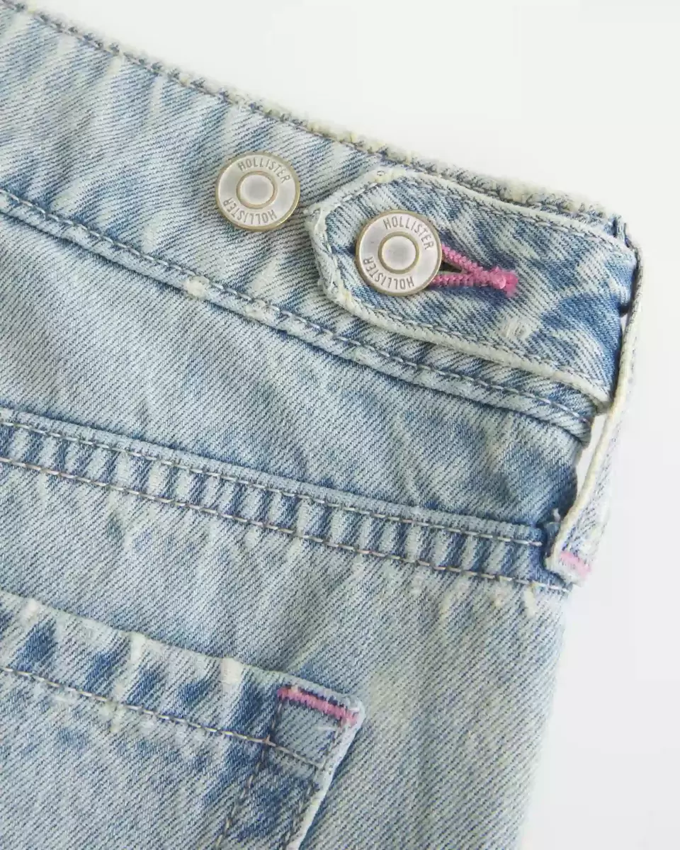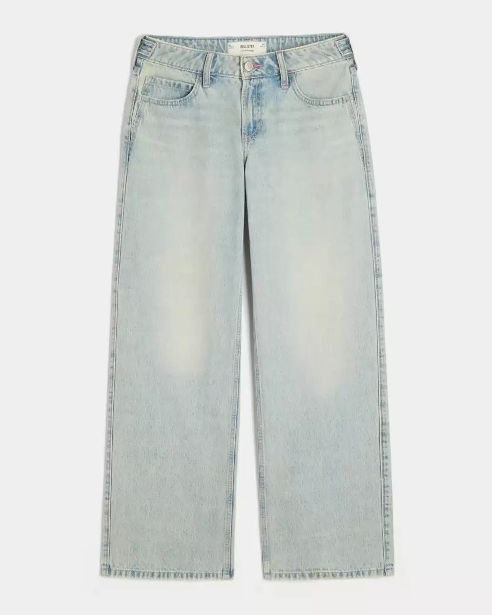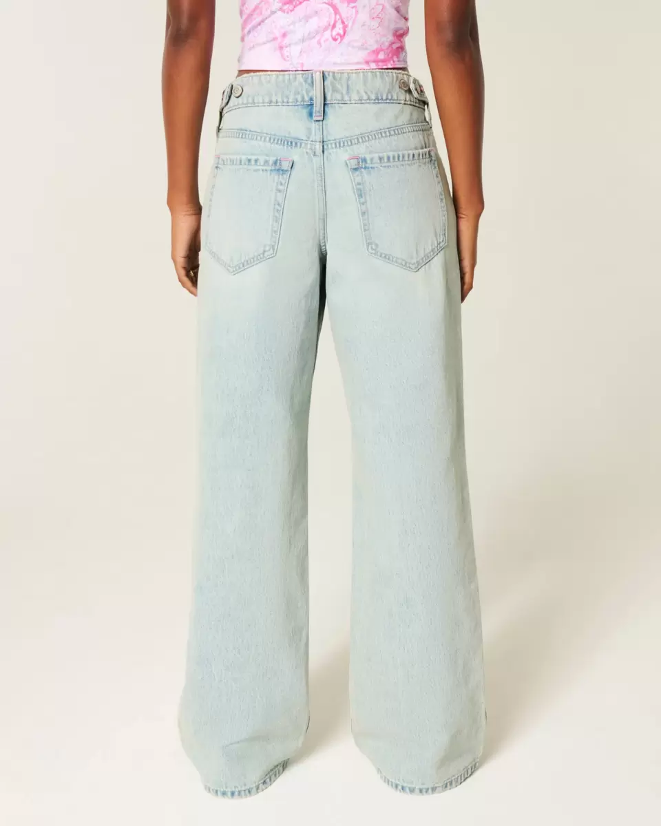 Wygodne jeansy w jasnym kolorze, z regulowanym niskim stanem i luźnymi nogawkami. Wyblaknięcia, przetarcia. Produkt importowany.