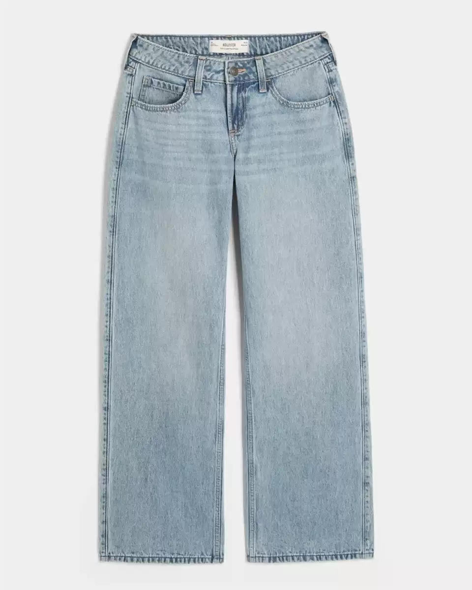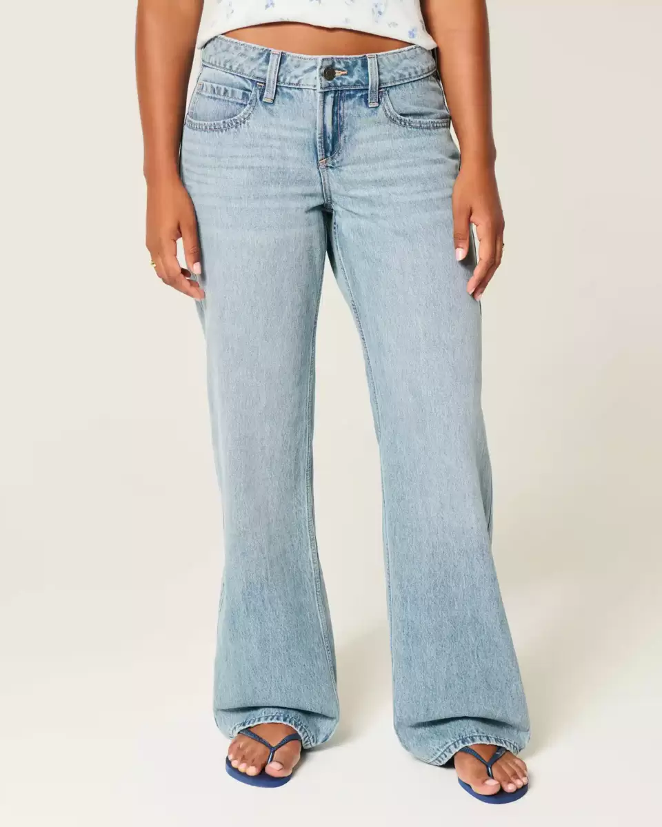 Wygodne jeansy w średnim odcieniu, zaprojektowane z atrakcyjnym niskim stanem i luźnymi nogawkami. Wyblaknięcia, zagniecenia. Importowane.