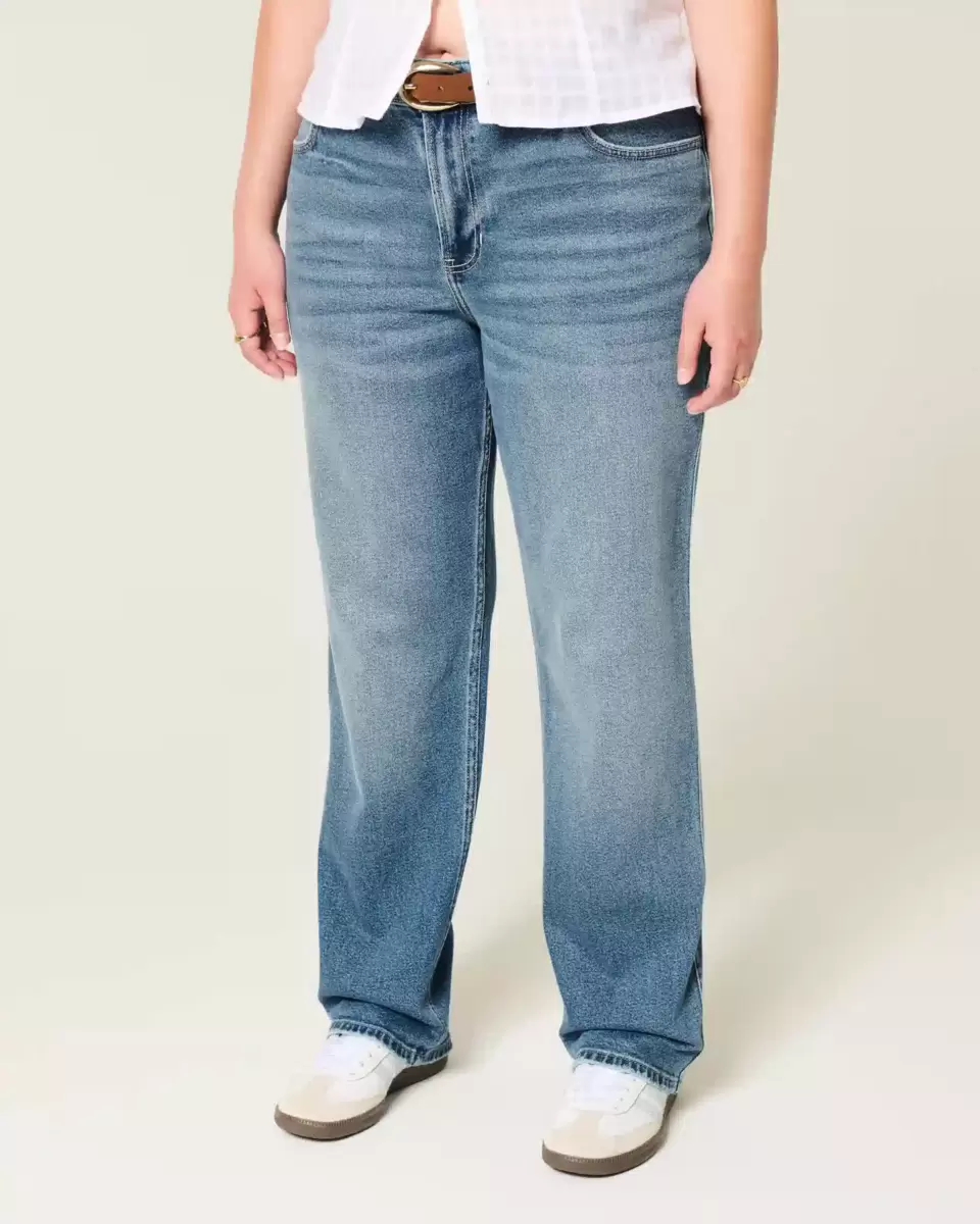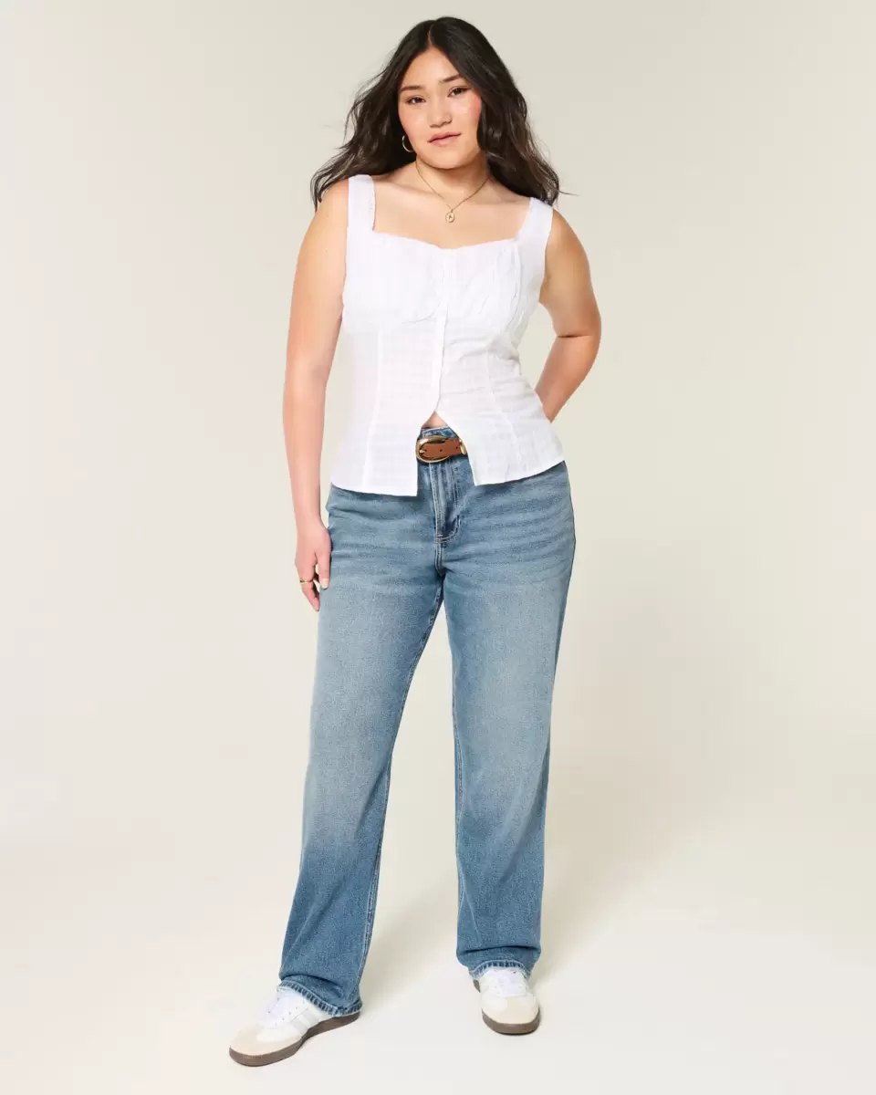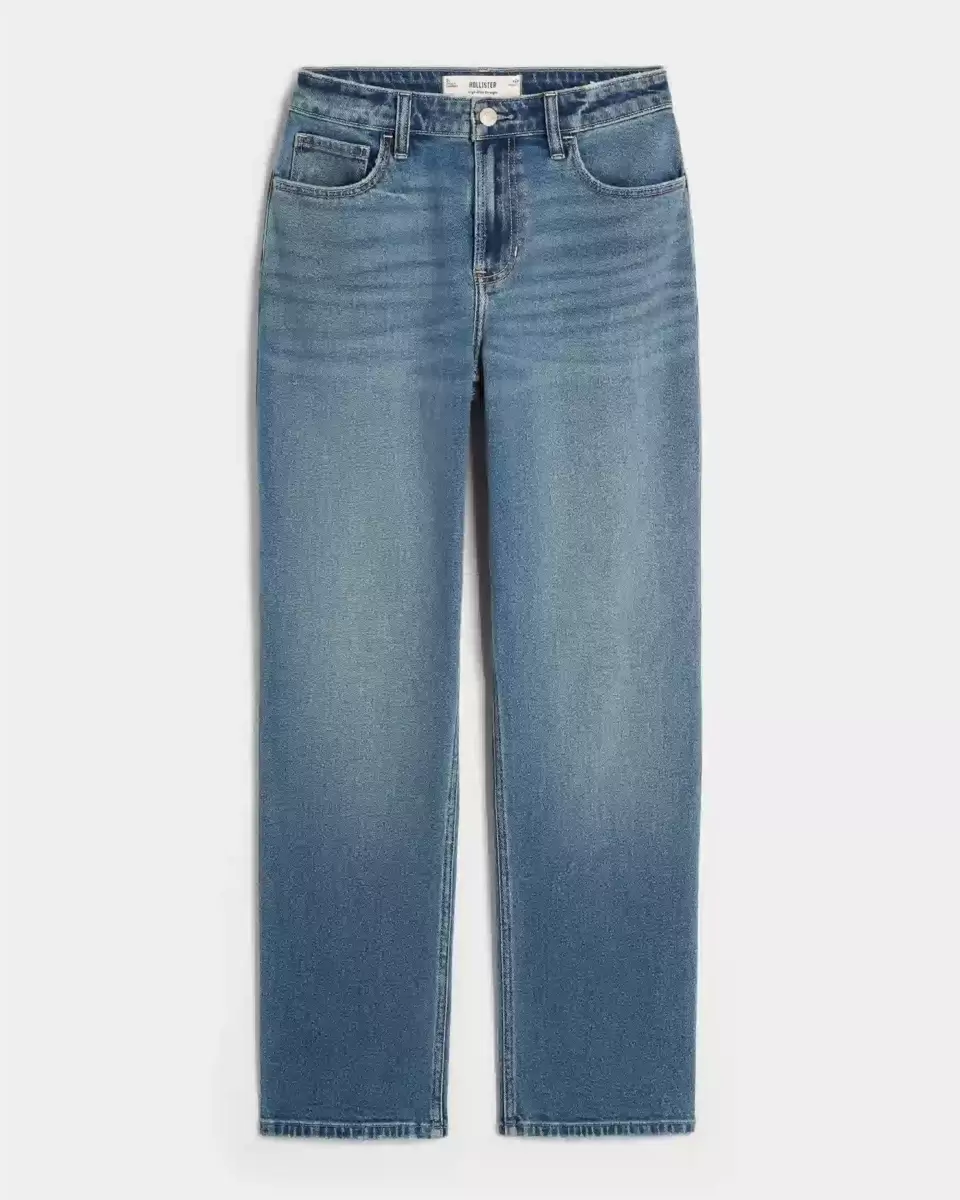 Wygodne jeansy z denimu Vintage Stretch w ciemnym odcieniu, z atrakcyjnym wysokim stanem i prostą nogawką. Wyblaknięcia, przetarcia. Importowane.