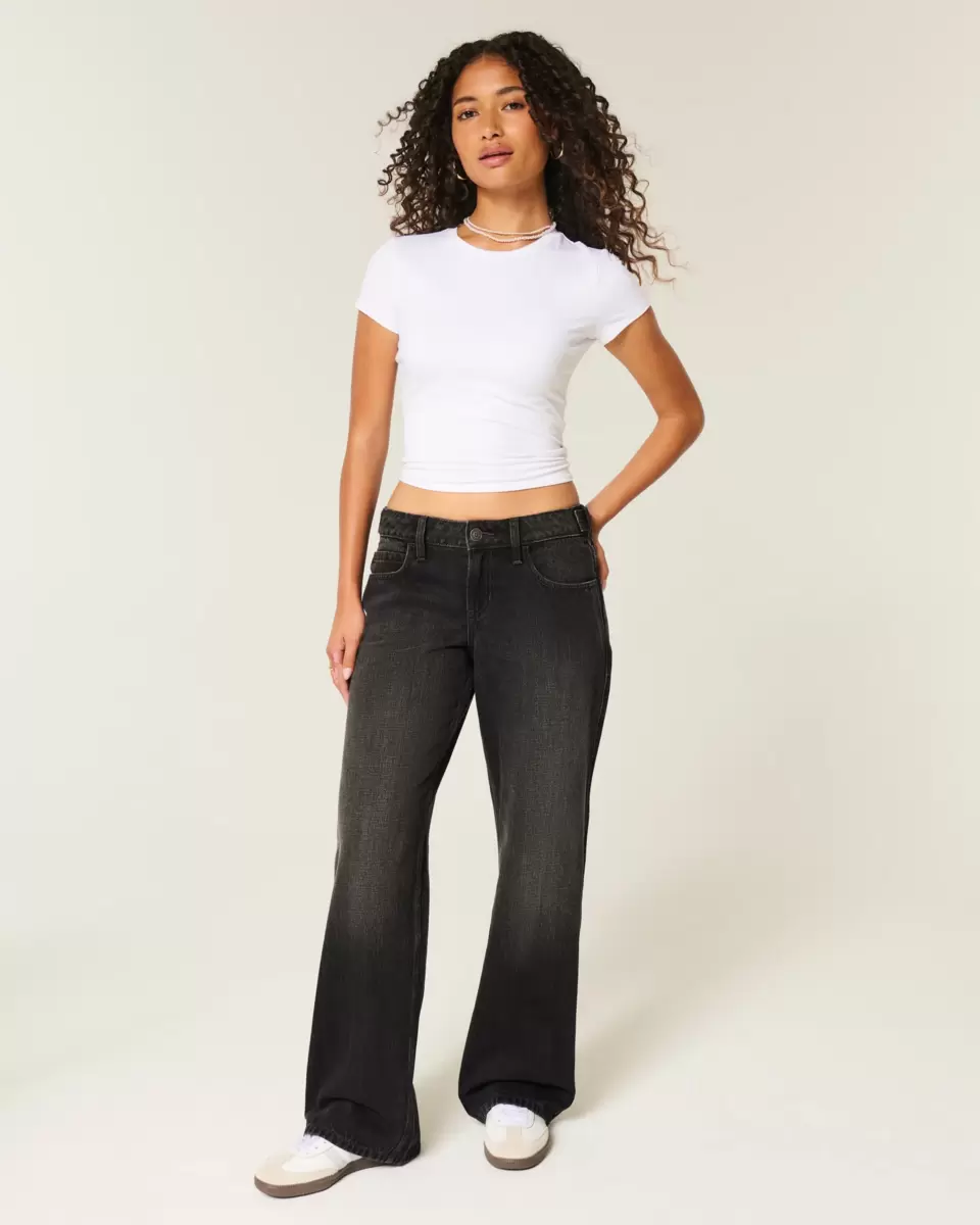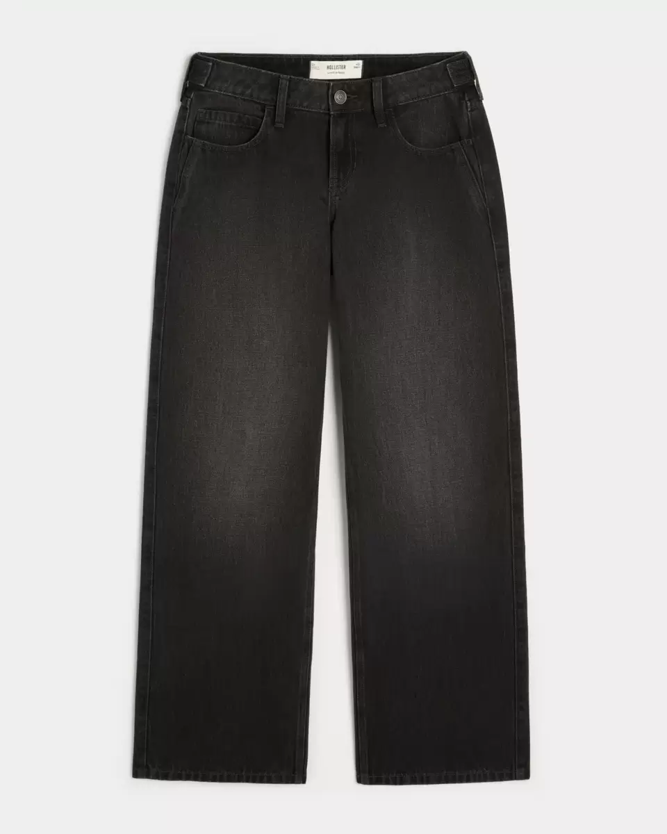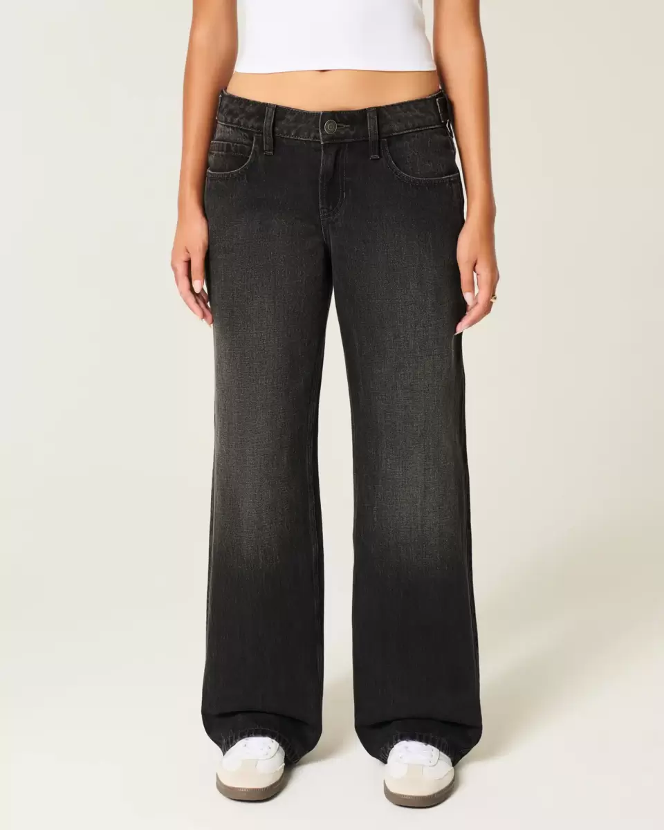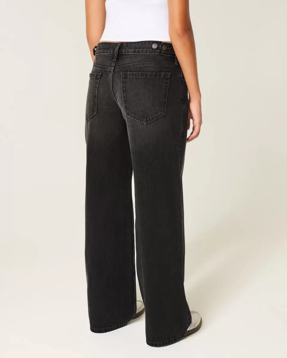 Wygodne jeansy w kolorze spranej czerni, z regulowanym, niskim stanem i luźnymi nogawkami. Wyblaknięcia. Produkt importowany.