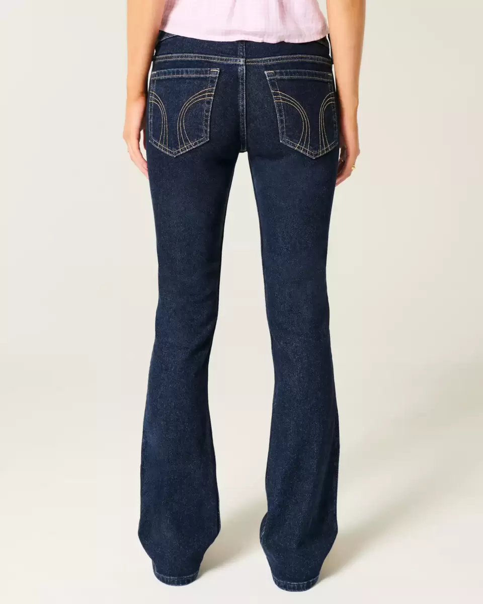 Wygodne jeansy w ciemnym odcieniu, z atrakcyjnym niskim stanem, wąską nogawką i rozszerzanymi nogawkami. Jeans vintage z elastycznego denimu. Importowane.