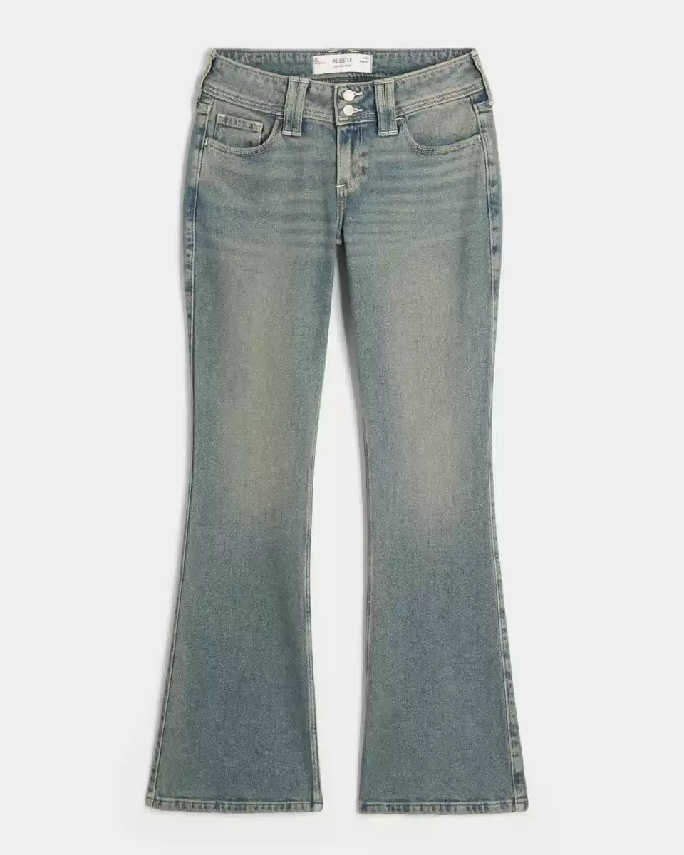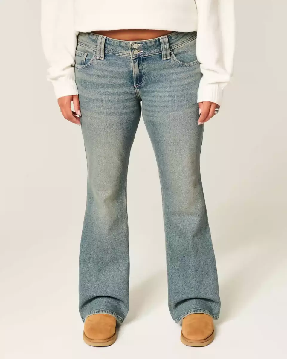 Wygodne jeansy w średnim odcieniu, z atrakcyjnym niskim stanem i rozszerzanymi nogawkami. Jeansy vintage stretch z efektem sprania i przetarciami, z tylnymi kieszeniami z patkami i haftem motyli. Importowane.
