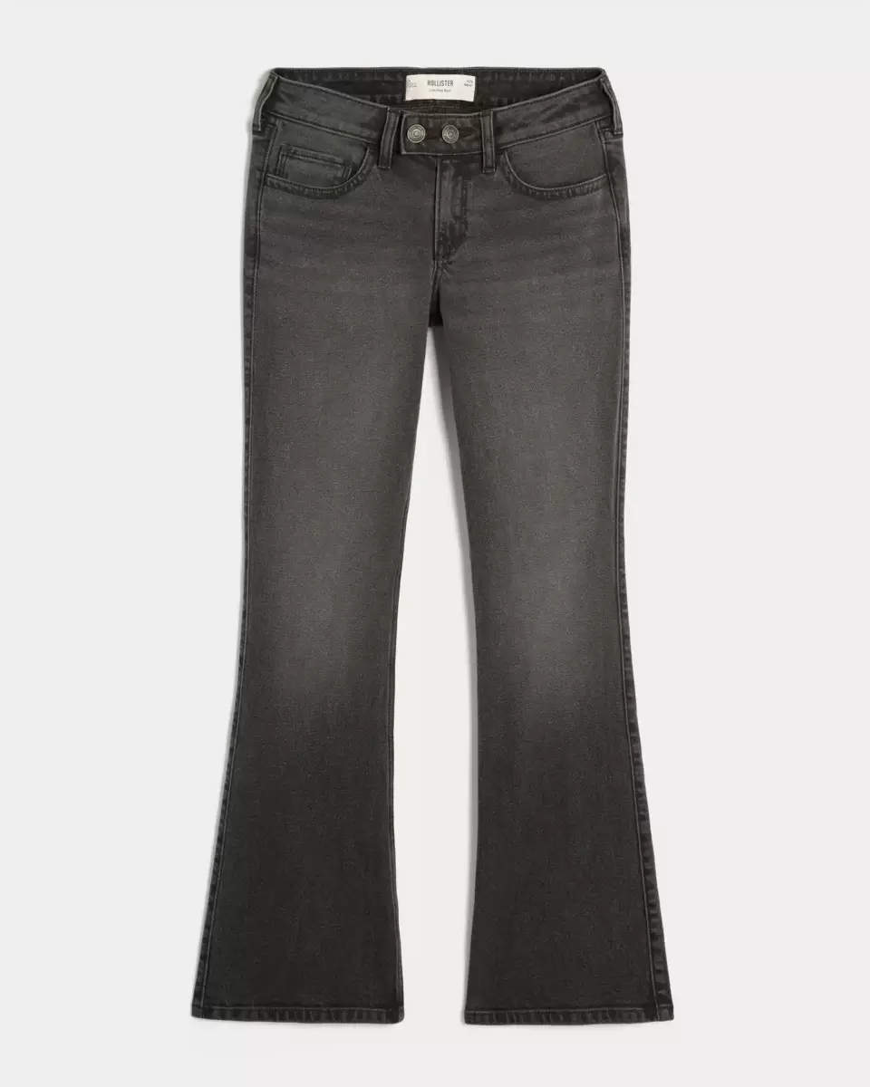 Wygodne jeansy z denimu Vintage Stretch, z niskim stanem i nogawkami do kostek. Wyblakłe, czarne z przetarciami i przetarciami. Importowane.