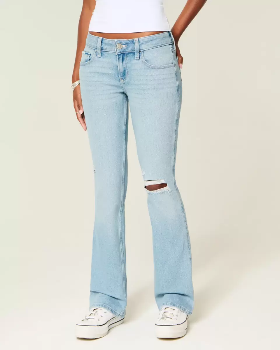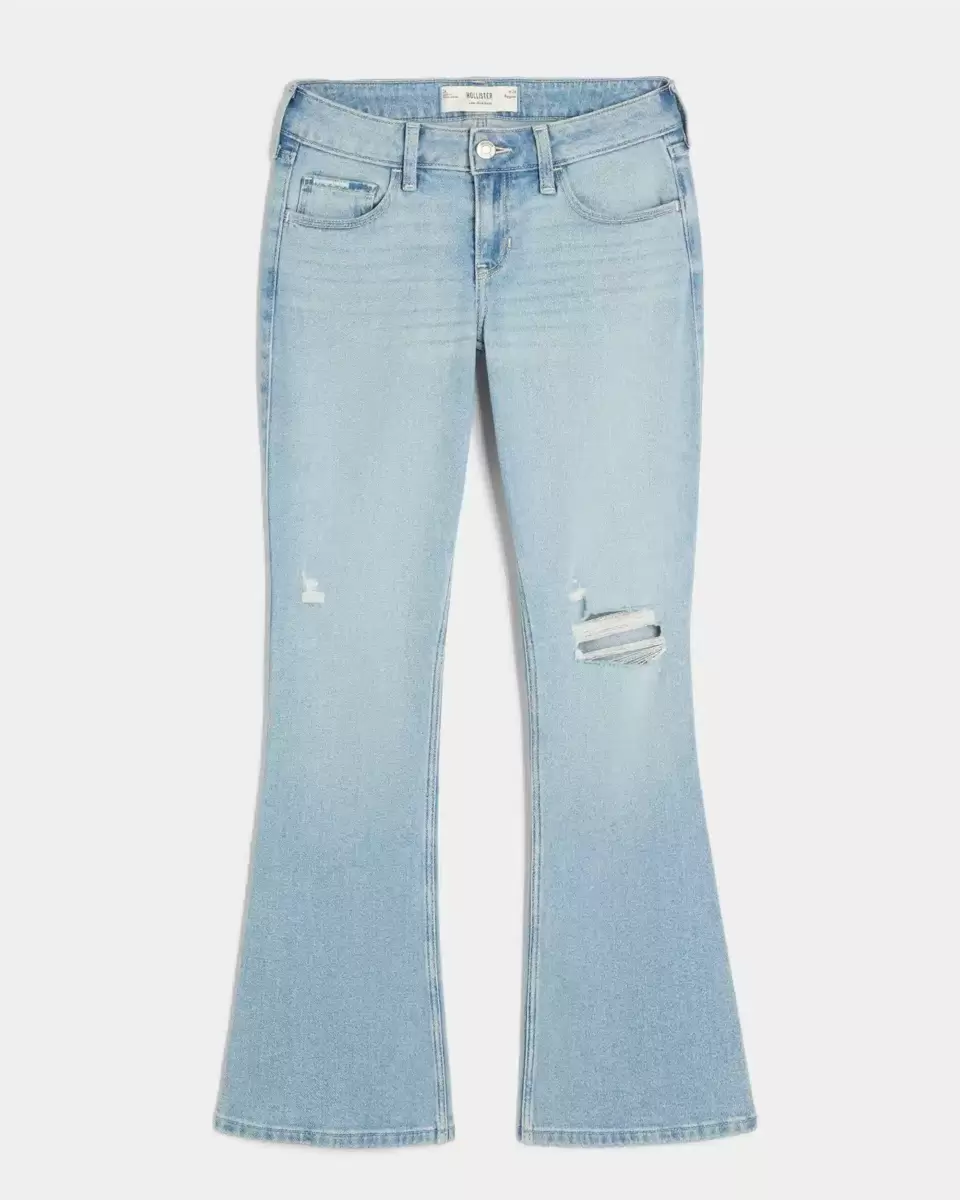 Wygodne jeansy z denimu Vintage Stretch, z niskim stanem i nogawkami u dołu. Lekkie spranie z przetarciami i przetarciami, haftowane detale przy prawej kieszonce na monety i tylnej kieszeni. Importowane.