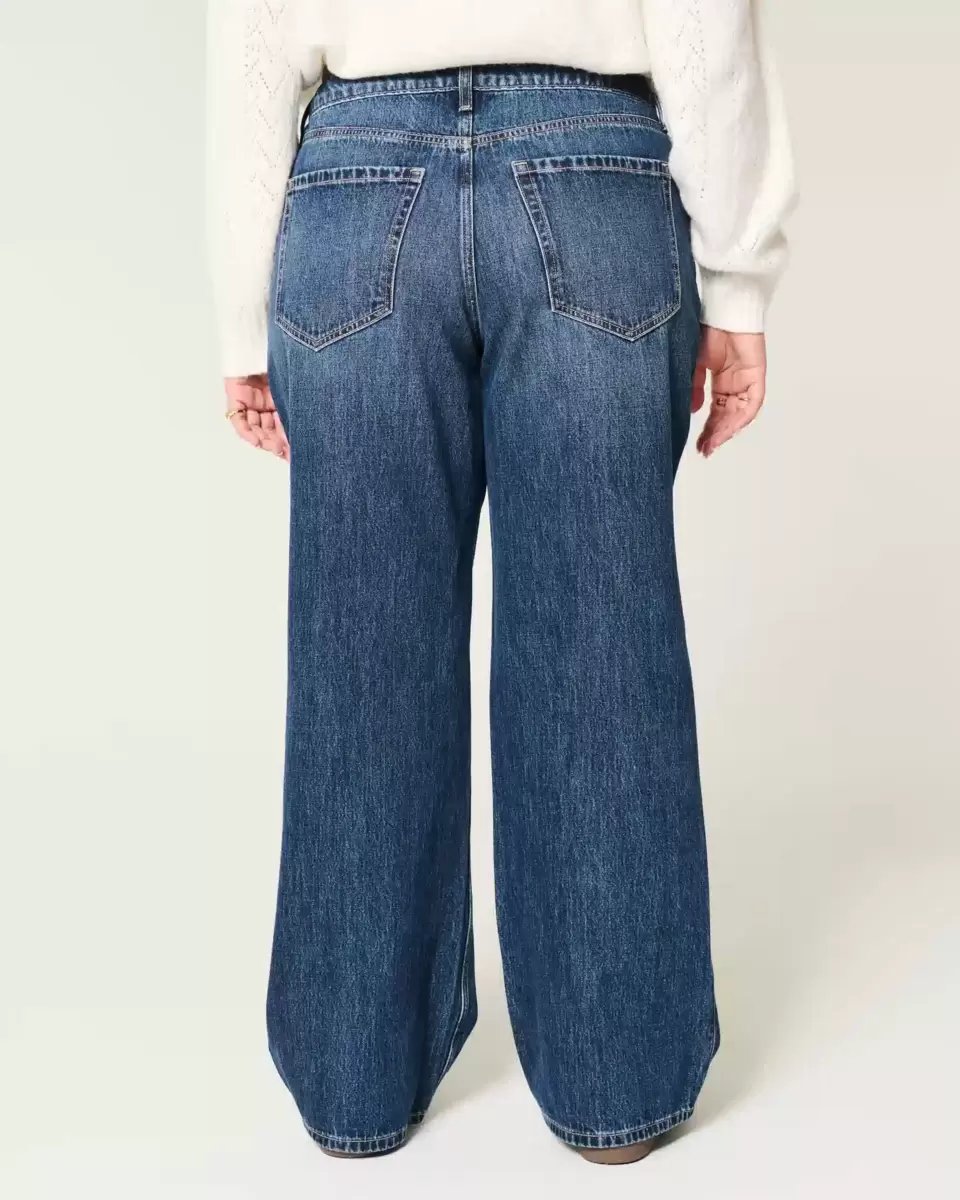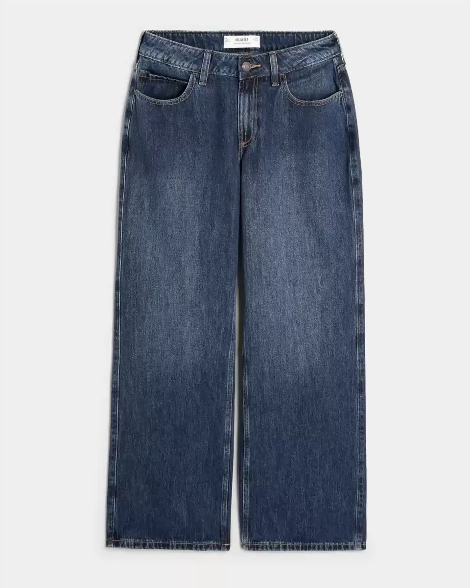 Zaprojektowano ze średnim stanem i luźnymi nogawkami. Ciemny denim z przetarciami. Importowane.