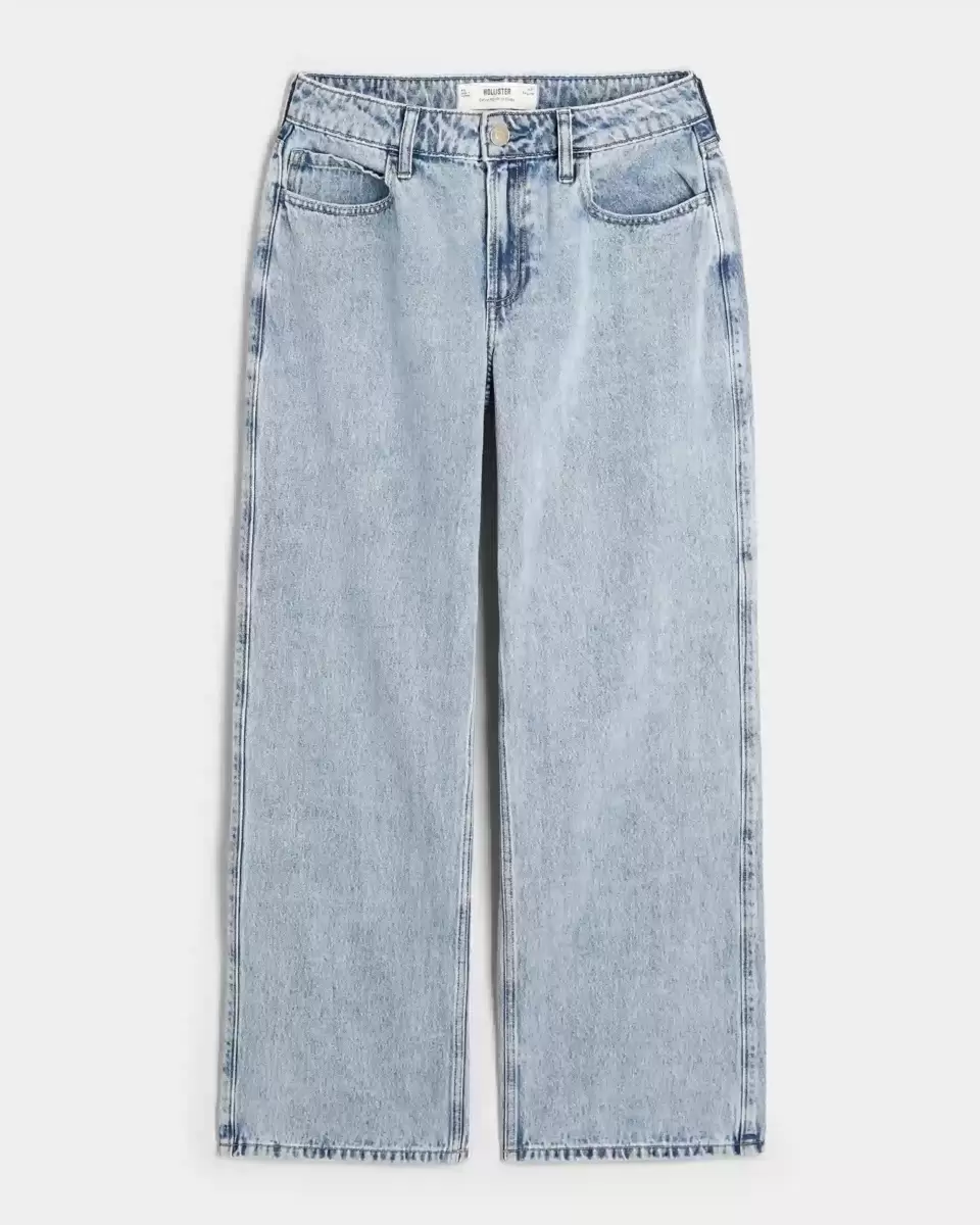 Zaprojektowano ze średnim stanem i luźnymi nogawkami. Denim o średnim stopniu sprania z przetarciami. Importowany.