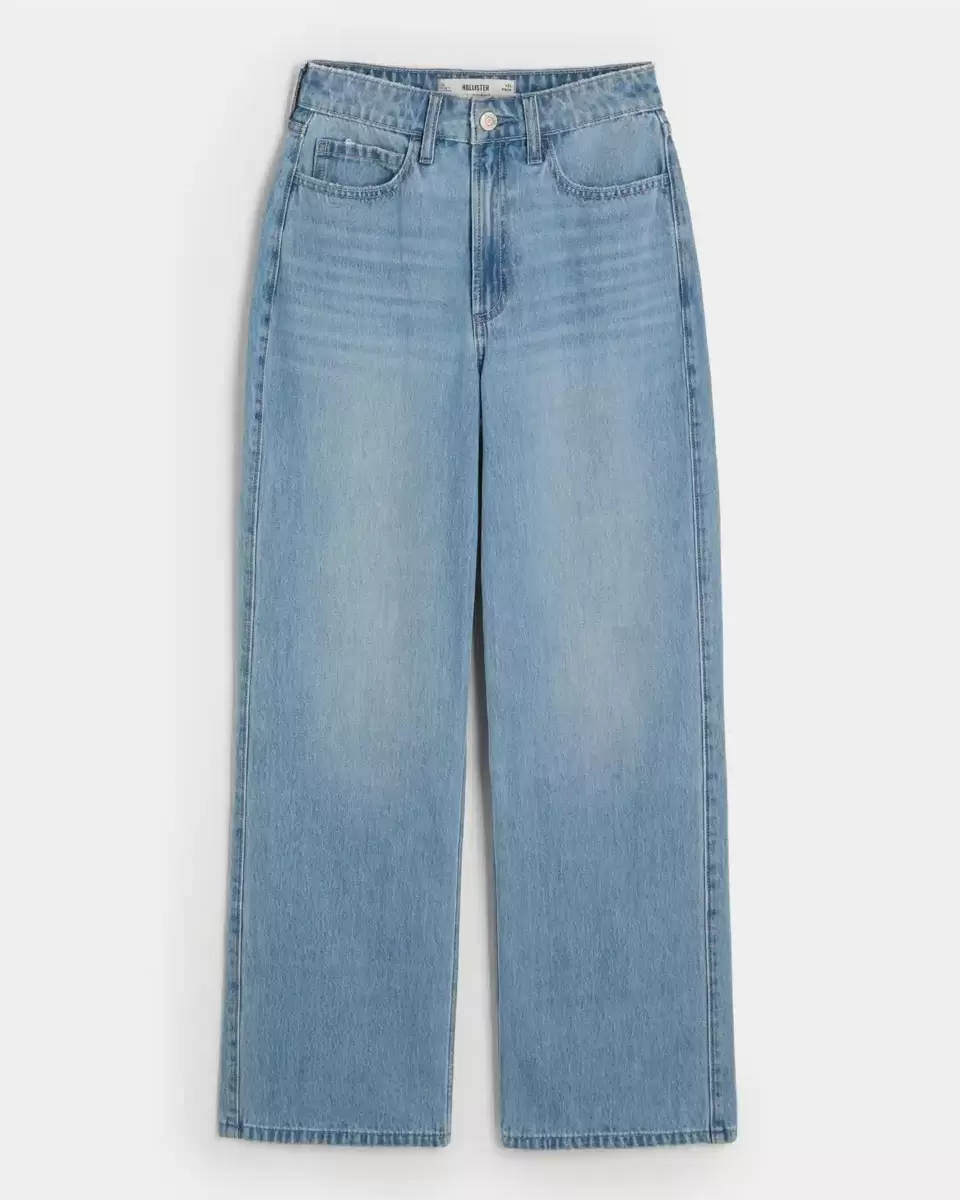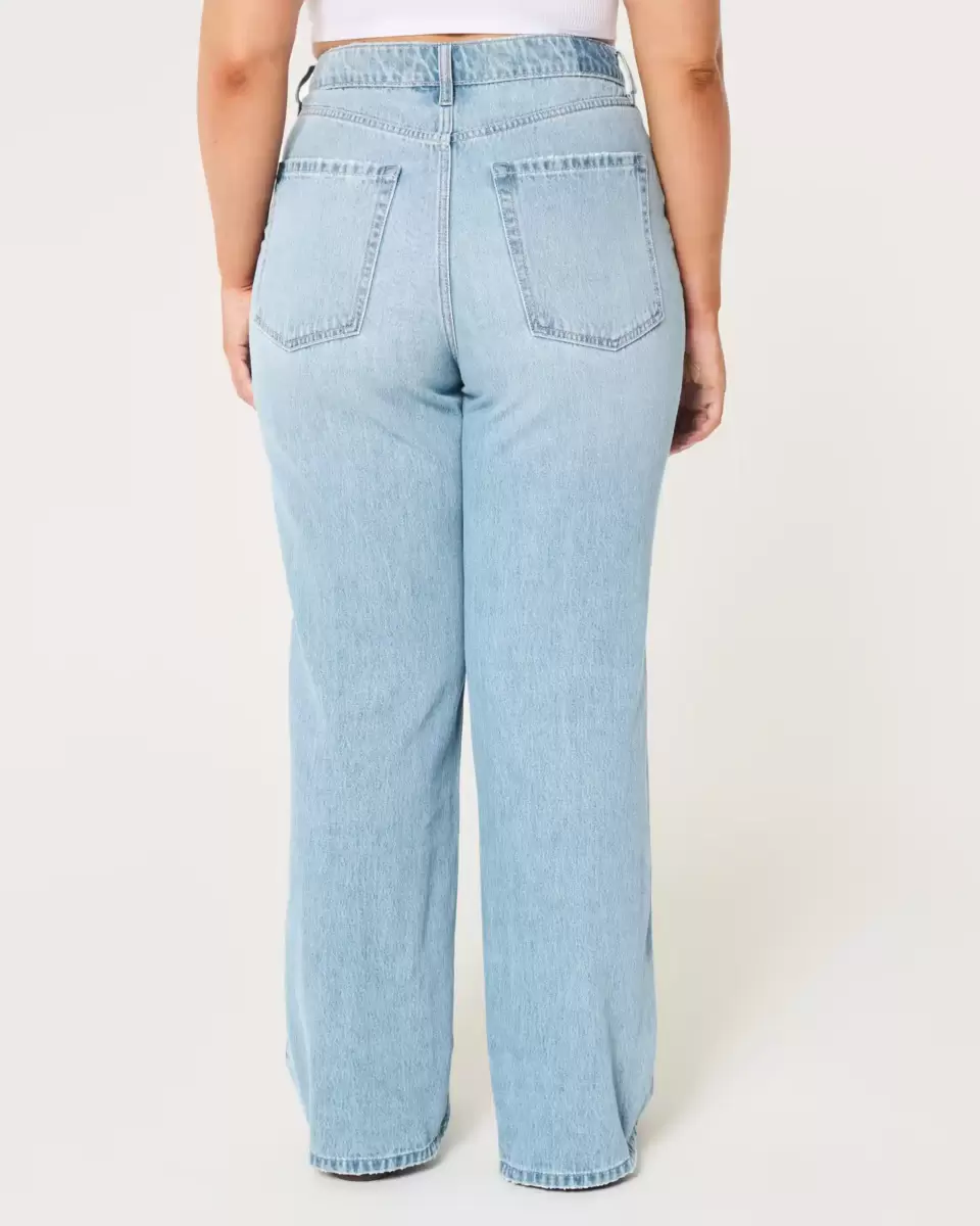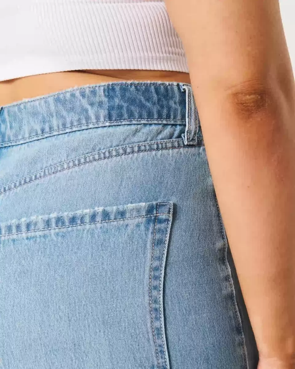 Zaprojektowano z bardzo wysokim stanem i luźnymi nogawkami. Denim o średnim stopniu sprania z przetarciami i wąsami. Importowany.
